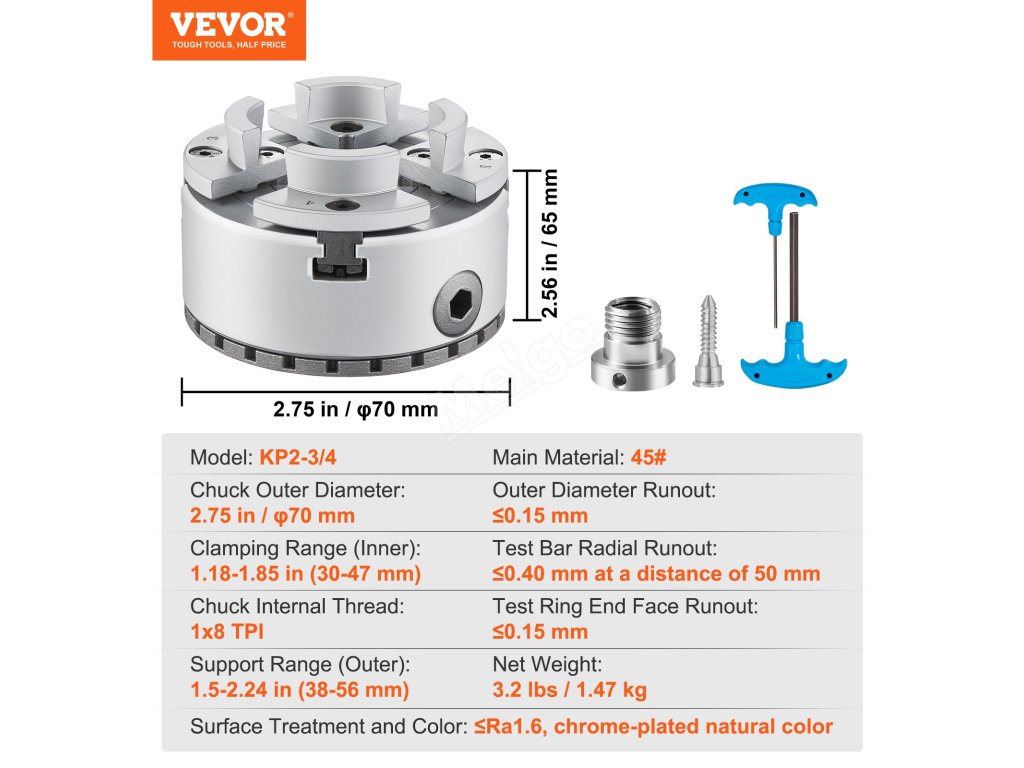 | Vnější průměr sklíčidla | 2.75 palců / φ70 mm |