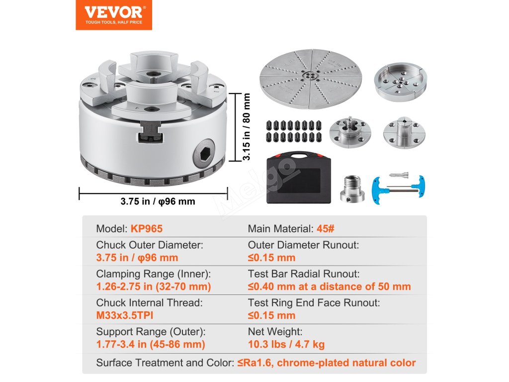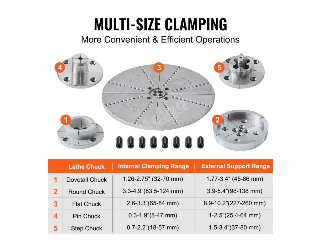 Ať už se zabýváte obráběním dřeva, vrtáním, broušením nebo jinými oblastmi, široká škála možností přizpůsobení sklíčidla splní vaše požadavky. Ať už pro osobní použití nebo průmyslovou výrobu, toto soustružnické sklíčidlo poskytuje vynikající výkon a spolehlivost, které splní vaše potřeby.