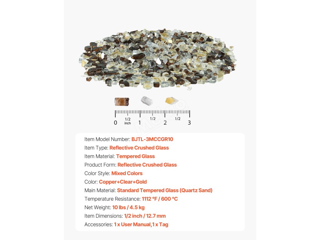 Sklo do krbu 10 lbs/4.5 kg, 1/2-inch/12.7 mm, měděné/čiré/zlaté