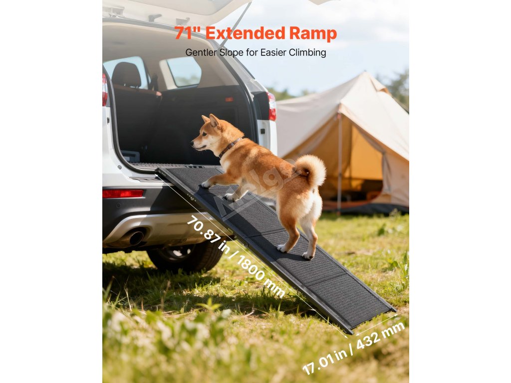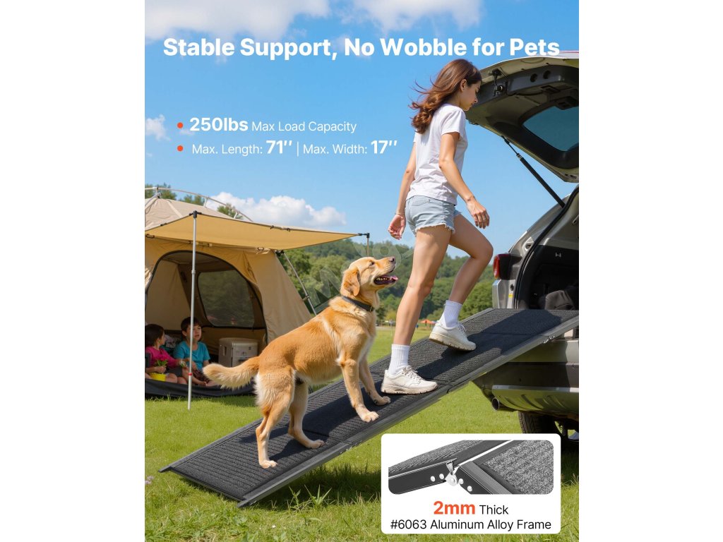 Tato prodloužená rampa pro domácí mazlíčky o délce 71 palců s vysoce pevným hliníkem 6063 a 2mm zesíleným rámem unese až 250 kg. Robustní konstrukce zabraňuje houpání a protiskluzový povrch udržuje stabilitu domácích zvířat při pohybu nahoru nebo dolů.