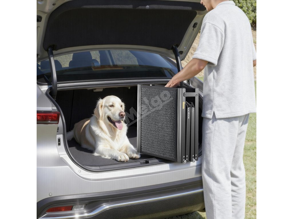 Psí rampa do auta má protiskluzový povrch a skládací konstrukce umožňuje snadné skladování a přenášení. Pomáhá domácím mazlíčkům bezpečně a s jistotou nastupovat a vystupovat z auta nebo stoupat po schodech, je vhodná pro více scénářů