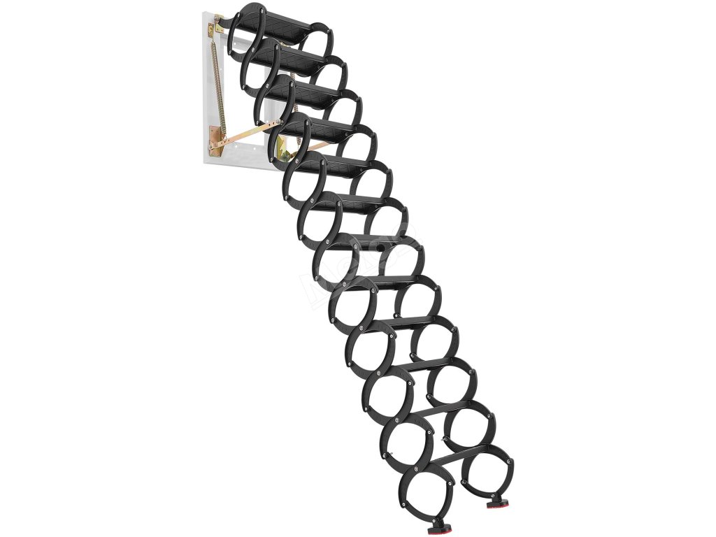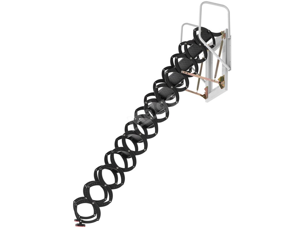 12stupňové nástěnné ocelové půdní schody se 3 montážními výškami