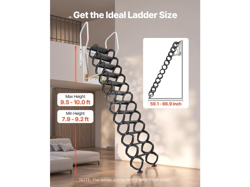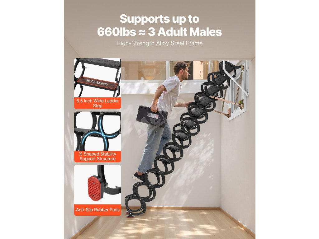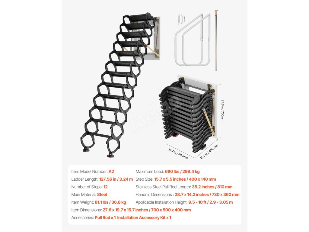 Sklopné půdní schodiště 12 stupňů 660LBS/299.4KG pro 9.5–10 ft