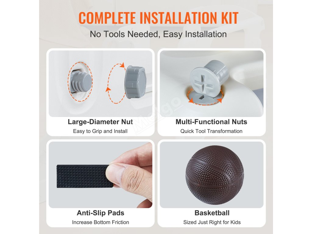 Připravili jsme pro vás montážní sadu bez nutnosti dalšího nákupu, šroubů, návodu, basketbalového koše a basketbalového míče. Snadná instalace vám přinese více zábavy.