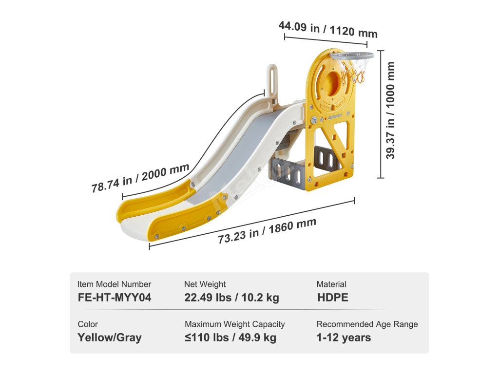 Skluzavka pro děti 1–12 let se schůdky, košem a nosností 50 kg