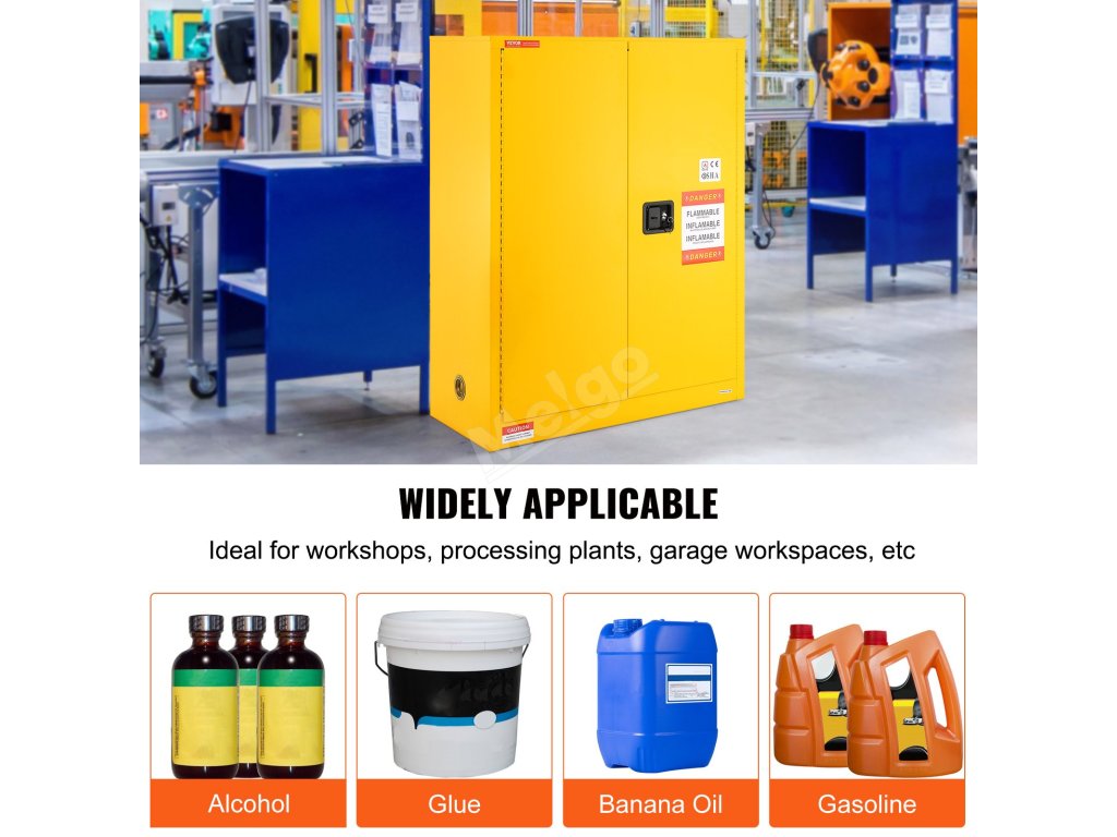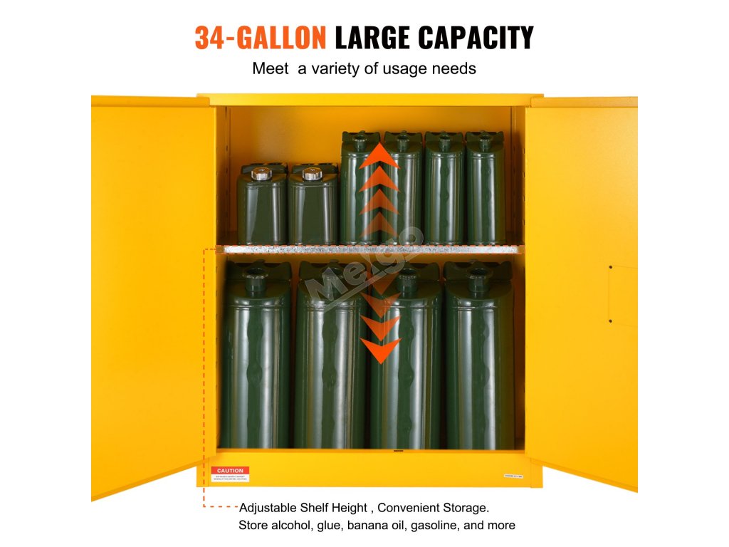 Naše skříň na hořlaviny s velkorysou kapacitou 34 galonů pojme různé hořlavé a hořlavé materiály, jako je alkohol, lepidlo, banánový olej, benzín a další. Budete mít k dispozici prostor, který potřebujete k bezpečnému uložení těchto předmětů.