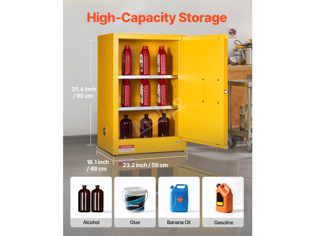 Skříň na hořlaviny 59×46×90 cm, 13 galonů, ocel, nastavitelná police