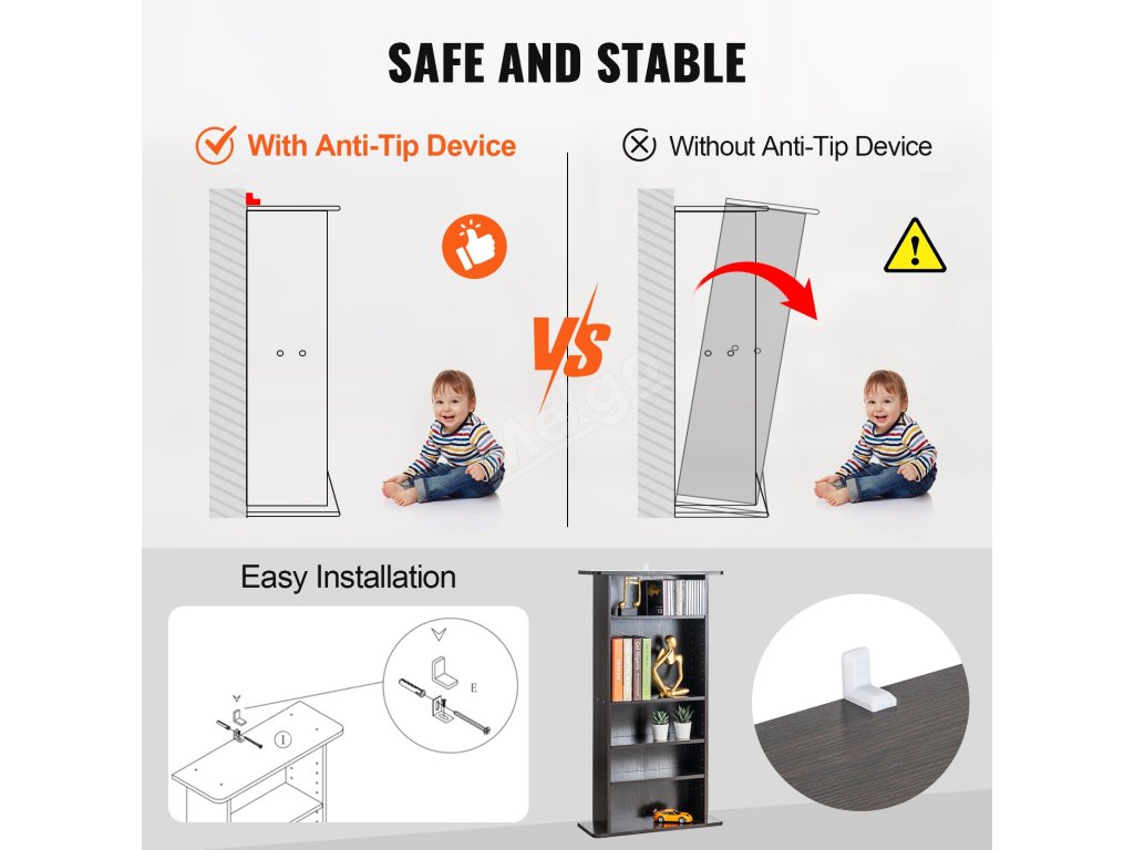 Součástí jsou hmoždinky pro větší stabilitu, takže naše police na DVD je ideální pro domácnosti s dětmi.