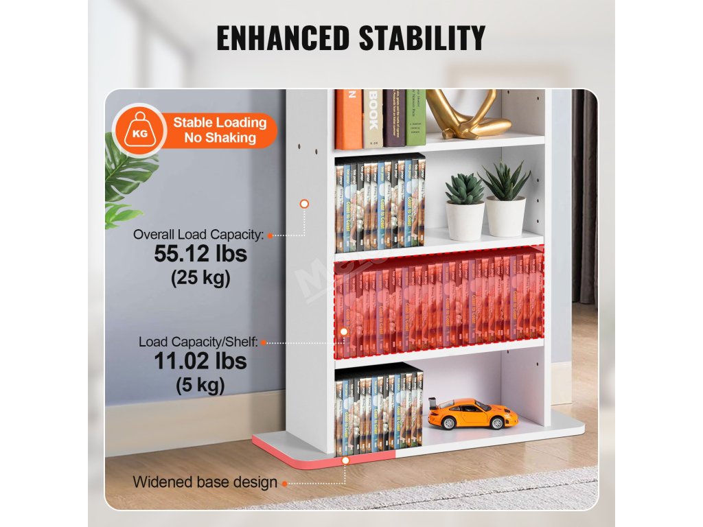Skříňka na CD je vylepšena prodlouženou základnou pro vynikající stabilitu. Vystavujte své cenné sbírky s klidem.