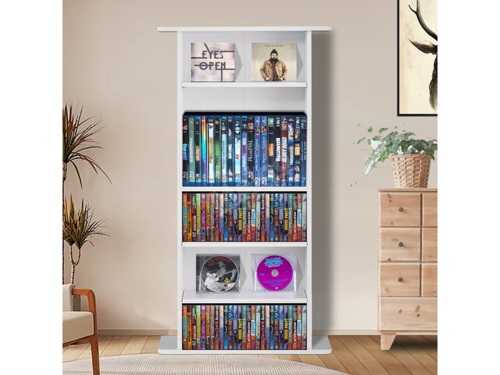 Naše skříňka na DVD, která bez problémů pojme DVD, CD, knihy, drobné dekorace, fotografie a sběratelské předměty, slouží jako dokonalé multifunkční úložné řešení pro vaši domácnost.
