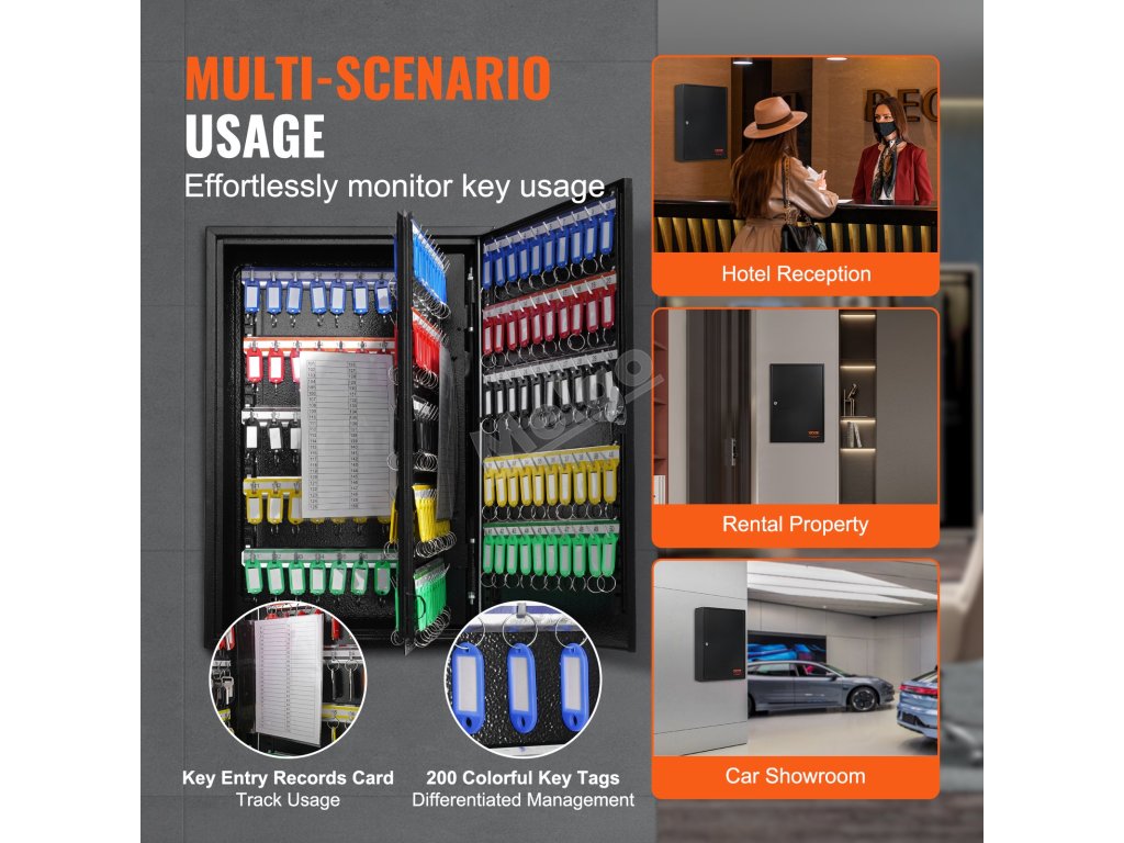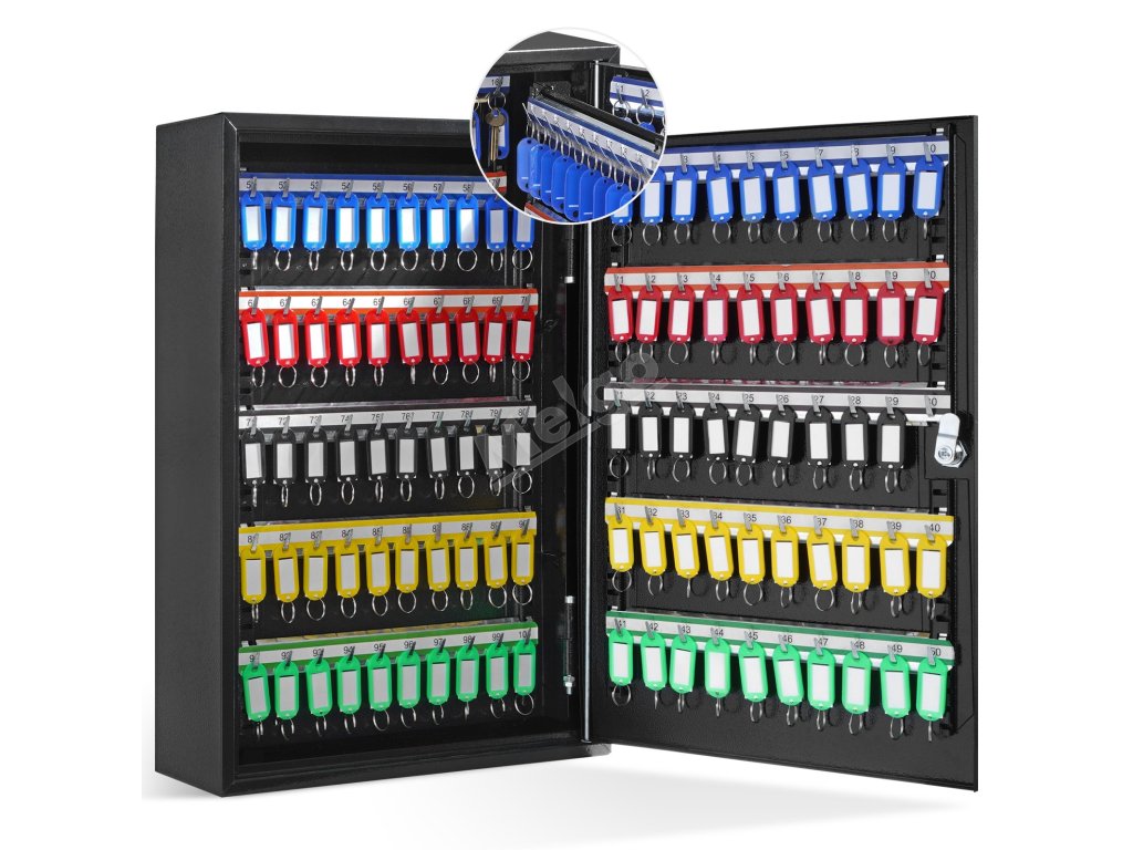 Tato skříňka na klíče s velkým nastavitelným závěsným stojanem splňuje potřeby centralizované správy pro každodenní ukládání klíčů. Stojan lze nastavit nahoru a dolů, což umožňuje pohodlné ukládání a kategorizaci klíčů podle délky.