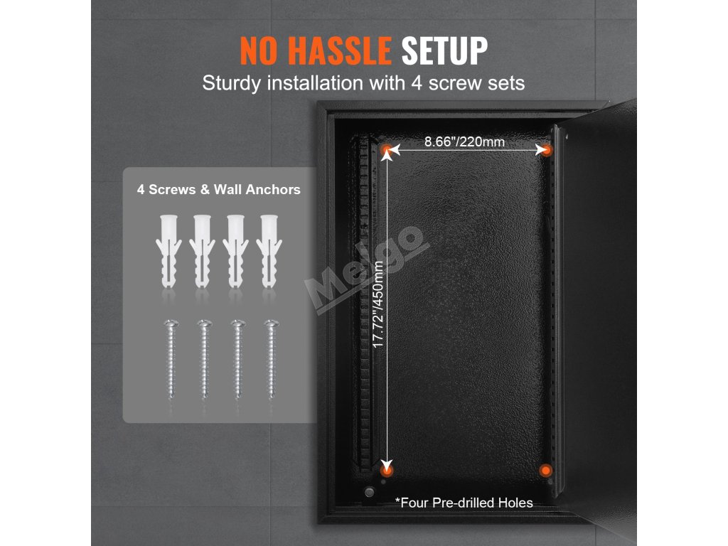 Dodává se se 4 sadami šroubů, které zajišťují stabilní instalaci na stěnu a efektivně šetří místo.