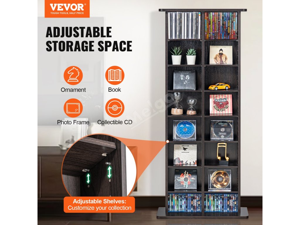 Všestranná a kreativní skříňka na DVD a CD, která díky nastavitelné polici maximalizuje úložnou kapacitu. Bez námahy pojme vaše cenná DVD a CD, knihy, drobné dekorace, fotografie a sběratelské předměty a udrží vaše věci přehledně uspořádané.