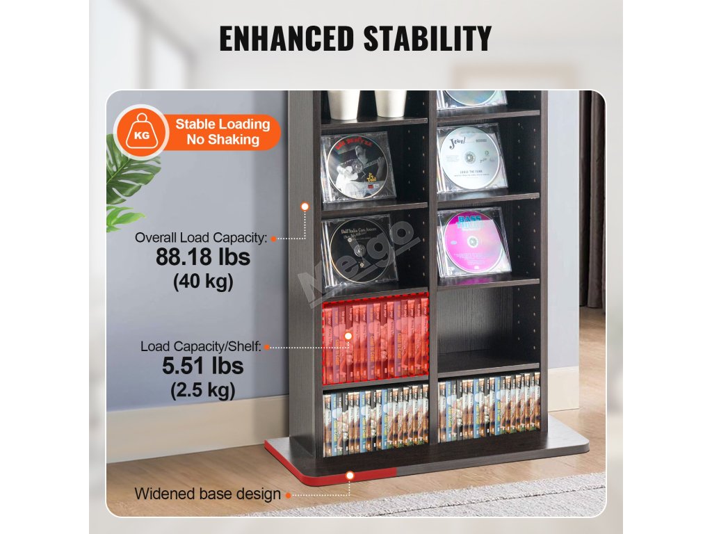 Skříňka na CD je vylepšena prodlouženou základnou pro vynikající stabilitu. Vystavujte své cenné sbírky s klidem.