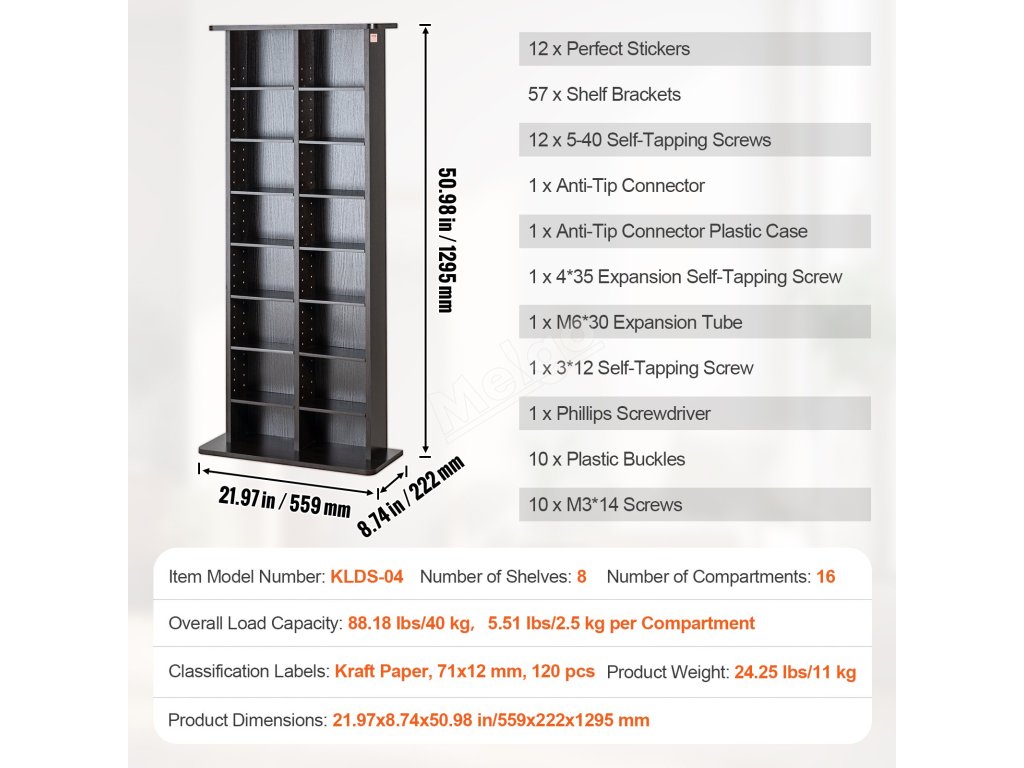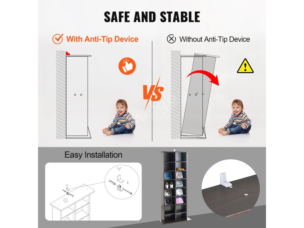 Součástí jsou hmoždinky pro větší stabilitu, takže naše police na DVD je ideální pro domácnosti s dětmi.
