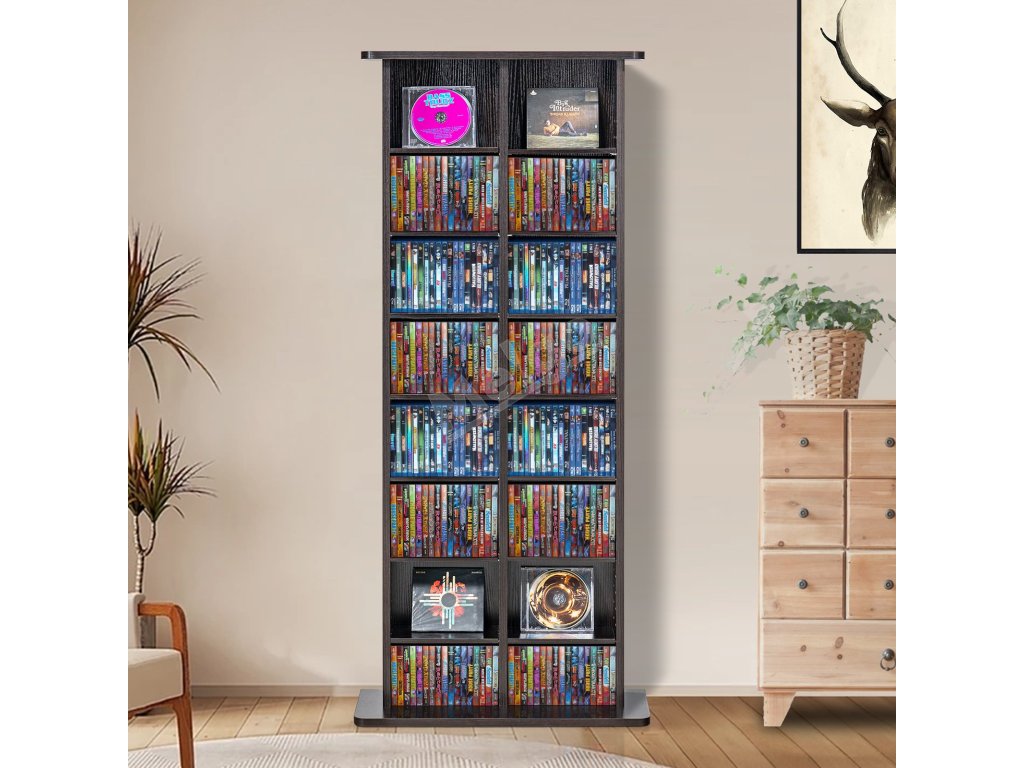 Naše skříňka na DVD, která bez problémů pojme DVD, CD, knihy, drobné dekorace, fotografie a sběratelské předměty, slouží jako dokonalé multifunkční úložné řešení pro vaši domácnost.