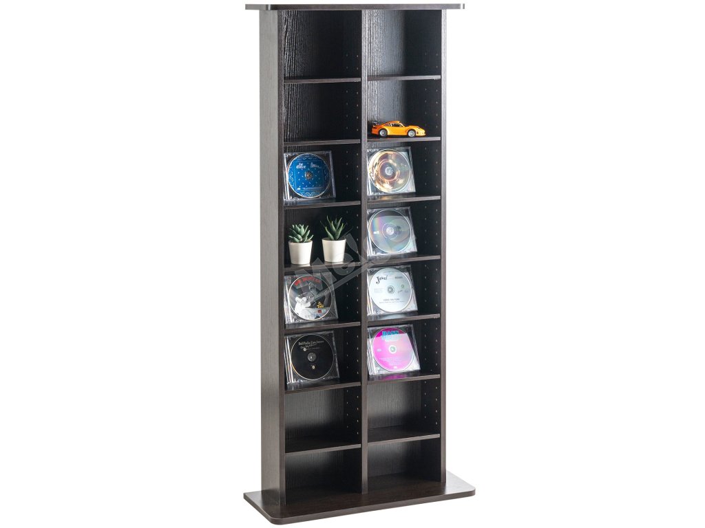 Skříňka na cd/dvd, 8-vrstvá, 464 cd, 16 přihrádek, espresso