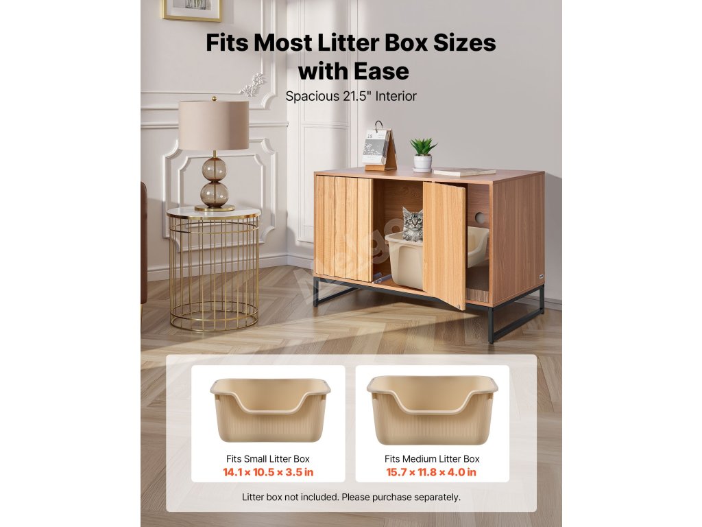 Tento skrytý box na kočičí stelivo lze flexibilně přeměnit na boční skříňku v severském stylu nebo skříňku pod televizi. Elegantně blokuje zápach a vysypané kočičí stelivo a zároveň udržuje váš domov čistý a stylový.