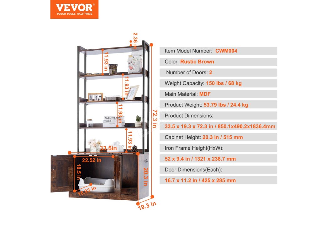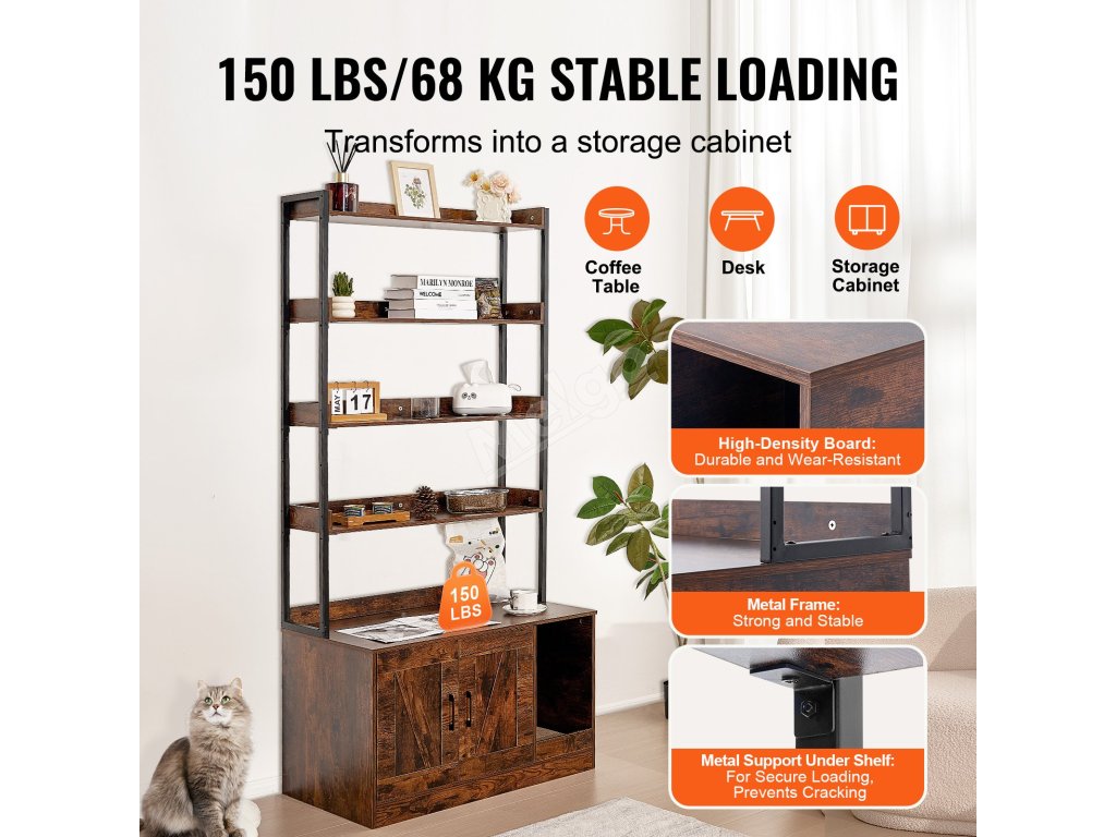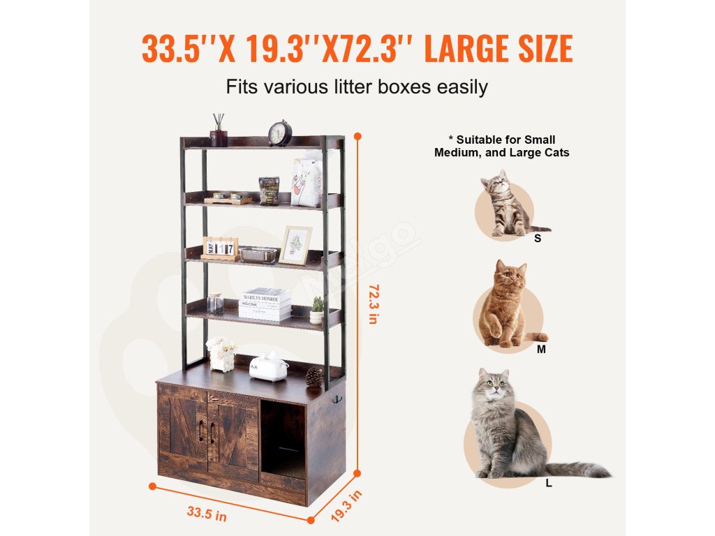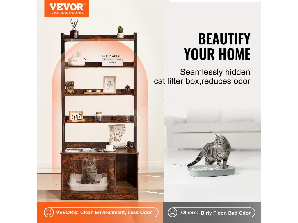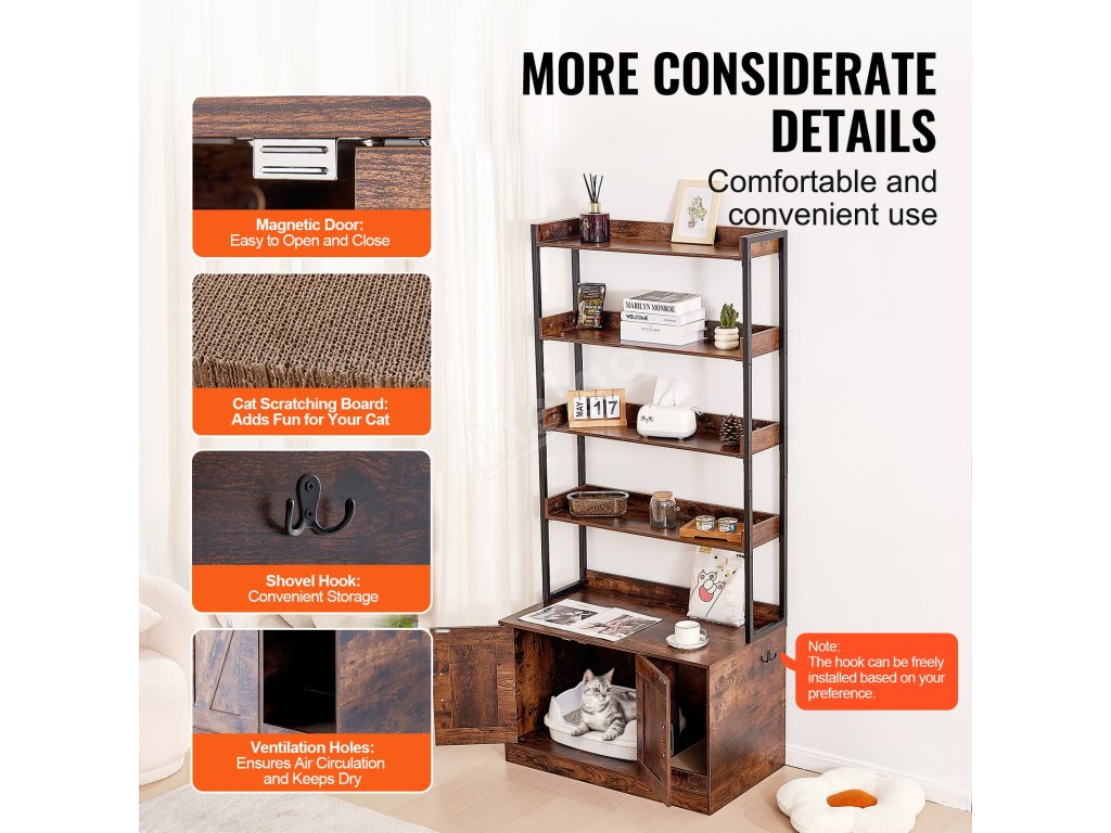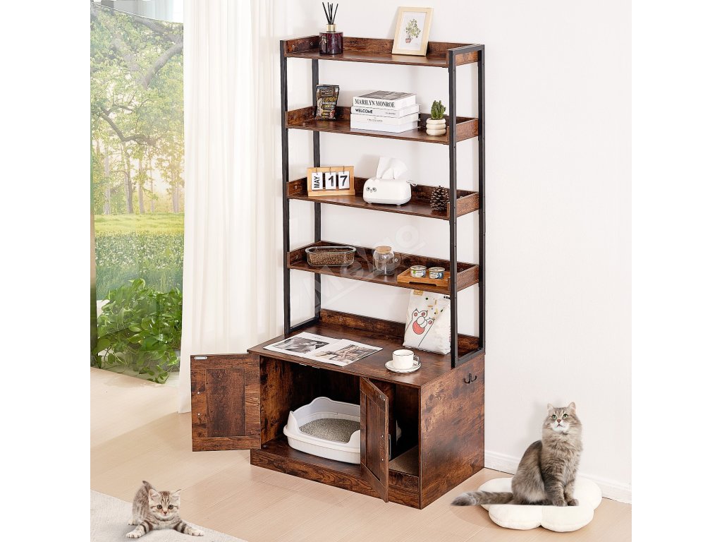 Tento kryt na kočičí toaletu se 4 policemi dokonale kombinuje styl a funkčnost a poskytuje vaší kočce soukromý a pohodlný prostor a zároveň slouží jako praktický kus domácího nábytku. Jeho elegantní design dokonale zapadne do jakéhokoli interiéru a zajistí, že váš domov bude uklizený a vaše kočka spokojená.