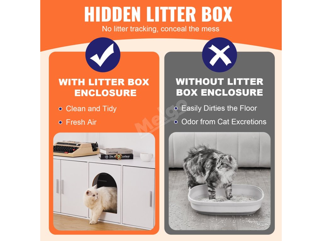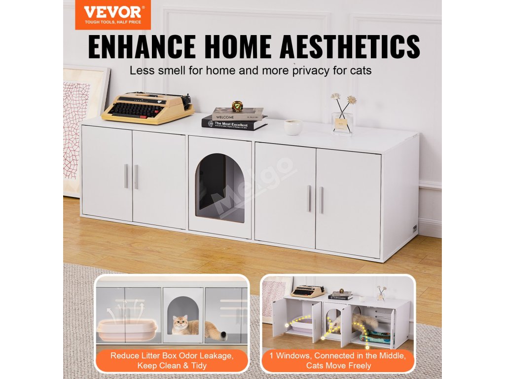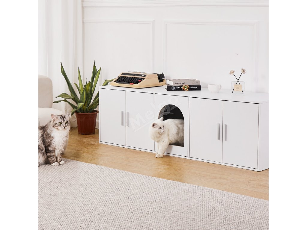 Velký prostor se třemi vchody umožňuje vaší kočce volný přístup a většina psů se do něj nedostane, takže vaše kočka bude v bezpečí a v soukromí. Nezáleží na tom, jakou velikost steliva používáte, tento nábytek pro kočky se do něj dokonale vejde a poskytne dostatek prostoru pro pohyb.