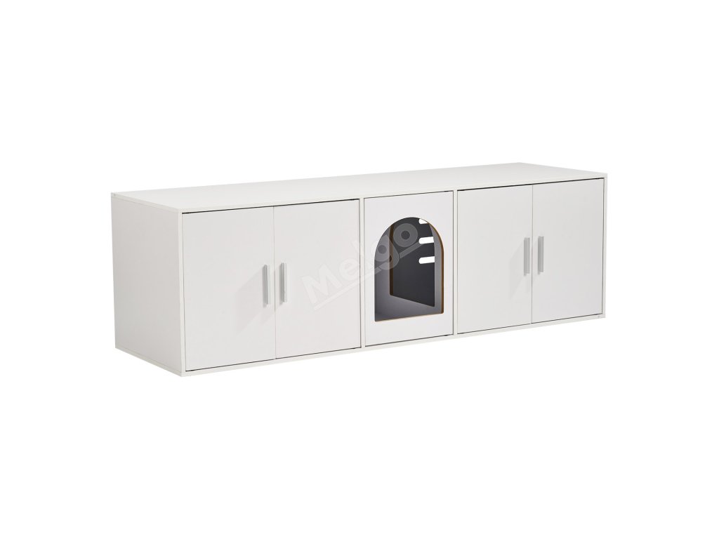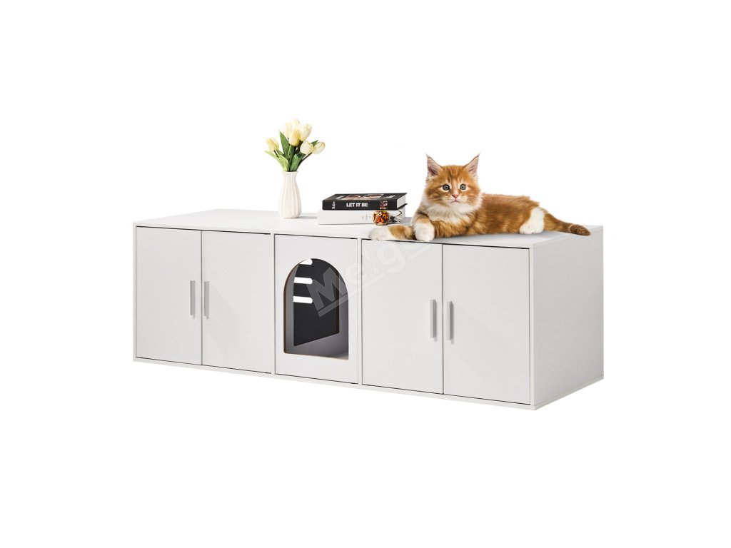Skříňka na kočičí záchod dřevěná skrytá 147.1 cm bílá s dvířky