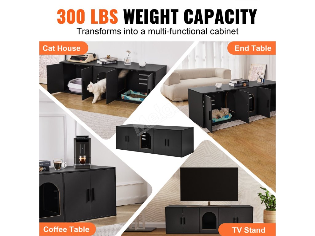 Tento skrytý kočičí nábytek je nejen soukromou toaletou pro kočky, ale také malým domkem, který poskytuje víceúčelový útulný prostor. Vnější design je jednoduchý a velkorysý a lze jej použít jako konferenční stolek nebo skříňku pod televizi. Ať už v obývacím pokoji, na balkoně nebo na zahradě, perfektně se hodí.