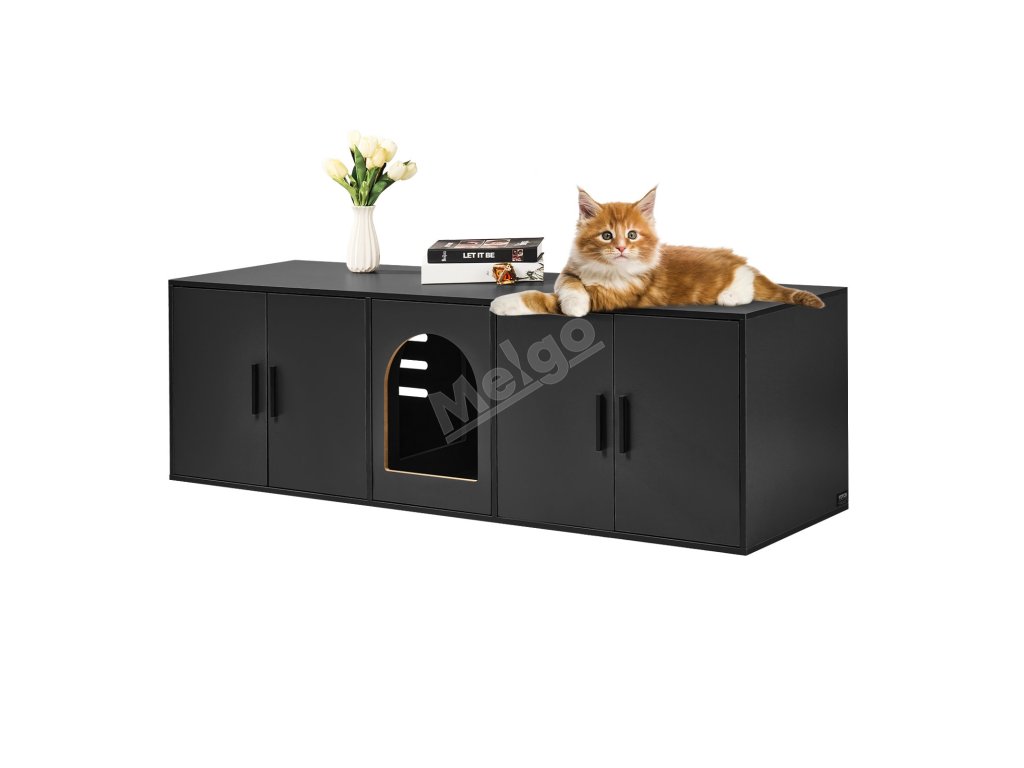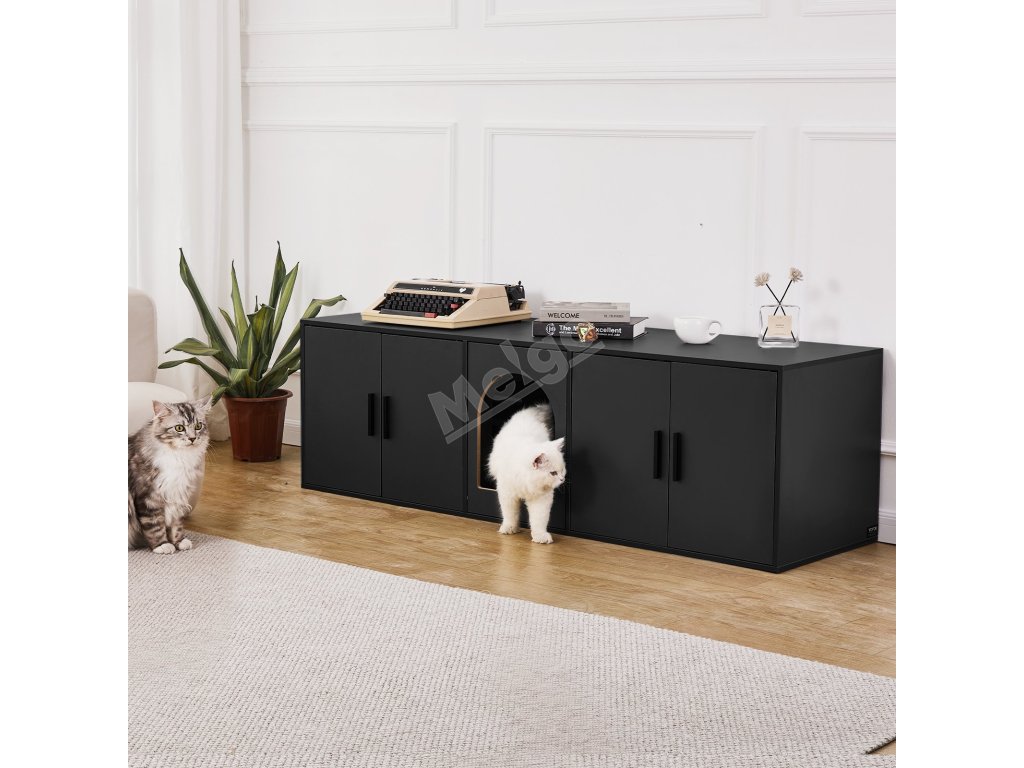 Skříňka na kočičí záchod pro 2 kočky, 147 cm, dřevěná, vnitřní, černá