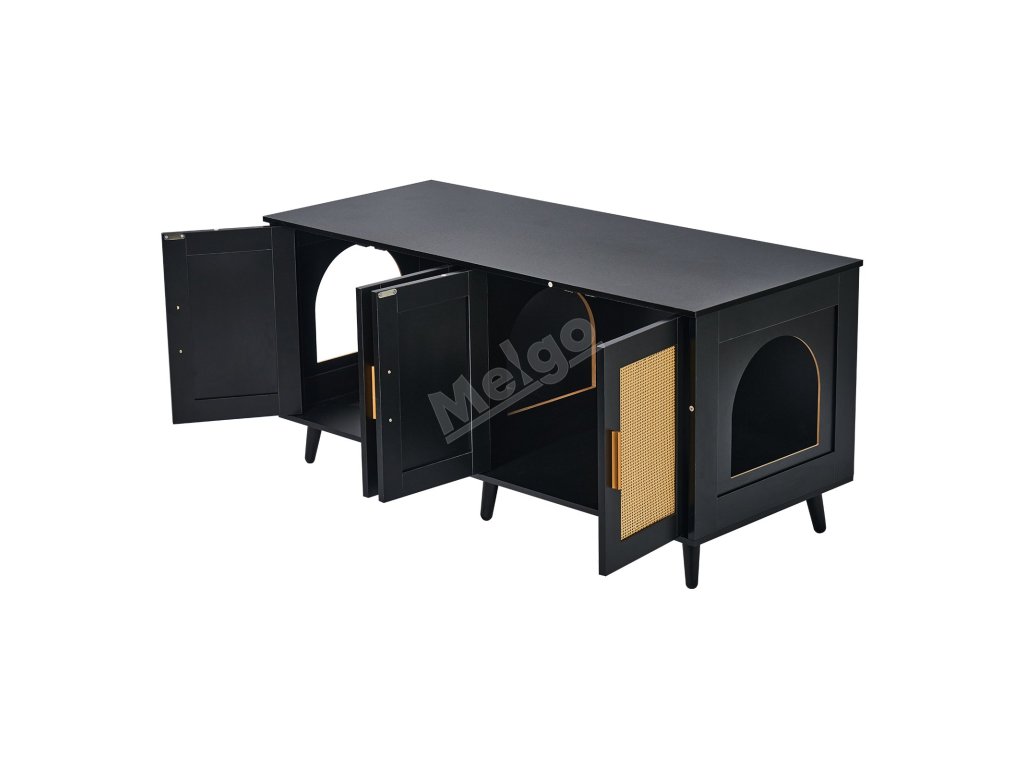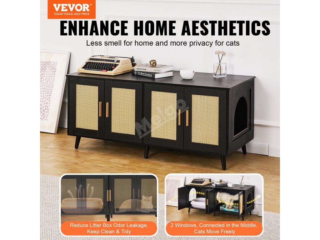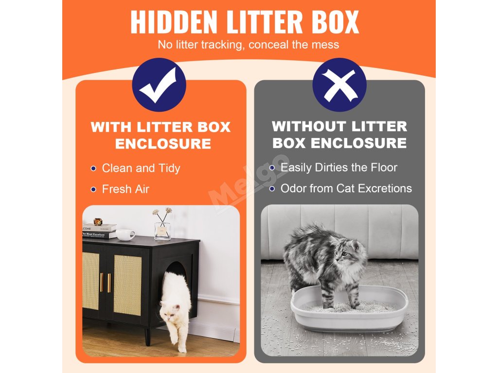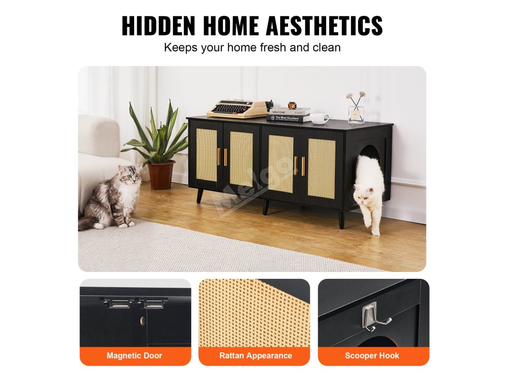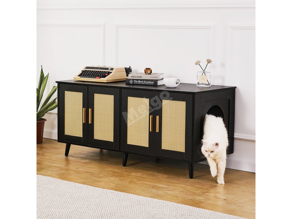 Skříňka na kočičí záchod pro 2 kočky, ratan dvířka, 47.2"×19.7"×21.7"