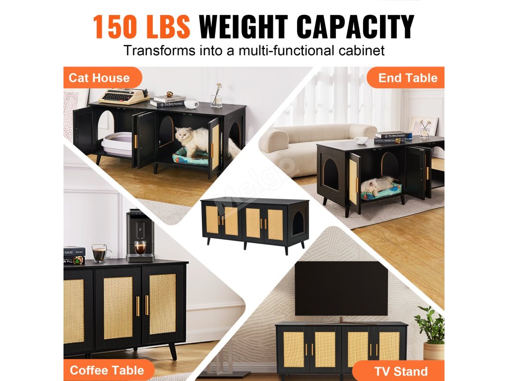 Díky maximální nosnosti 150 liber/68 kg se do kočičího boxu snadno vejdou knihy, květiny, ozdoby a další dekorace. S přídavnými podpěrnými nohami je nosnost 100 lb/45 kg. Nejenže se do něj vejde velký box na kočičí stelivo, ale snadno se přemění na útulný domeček pro kočky.