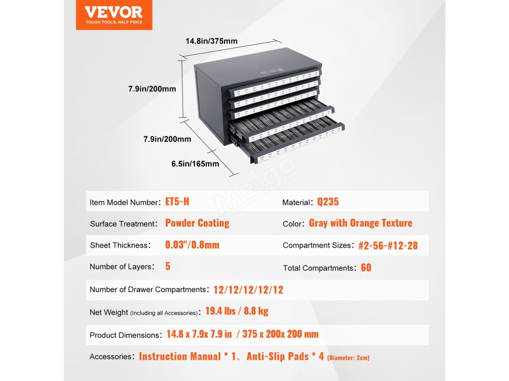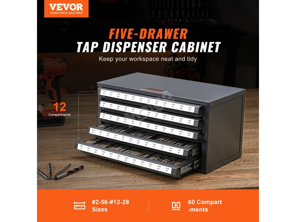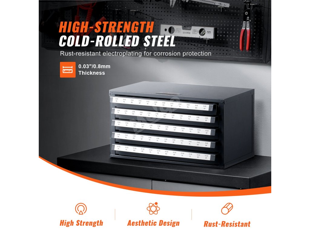 Skříňka na závitníky 5 zásuvek, 60 přihrádek, pro #2-56–#12-28