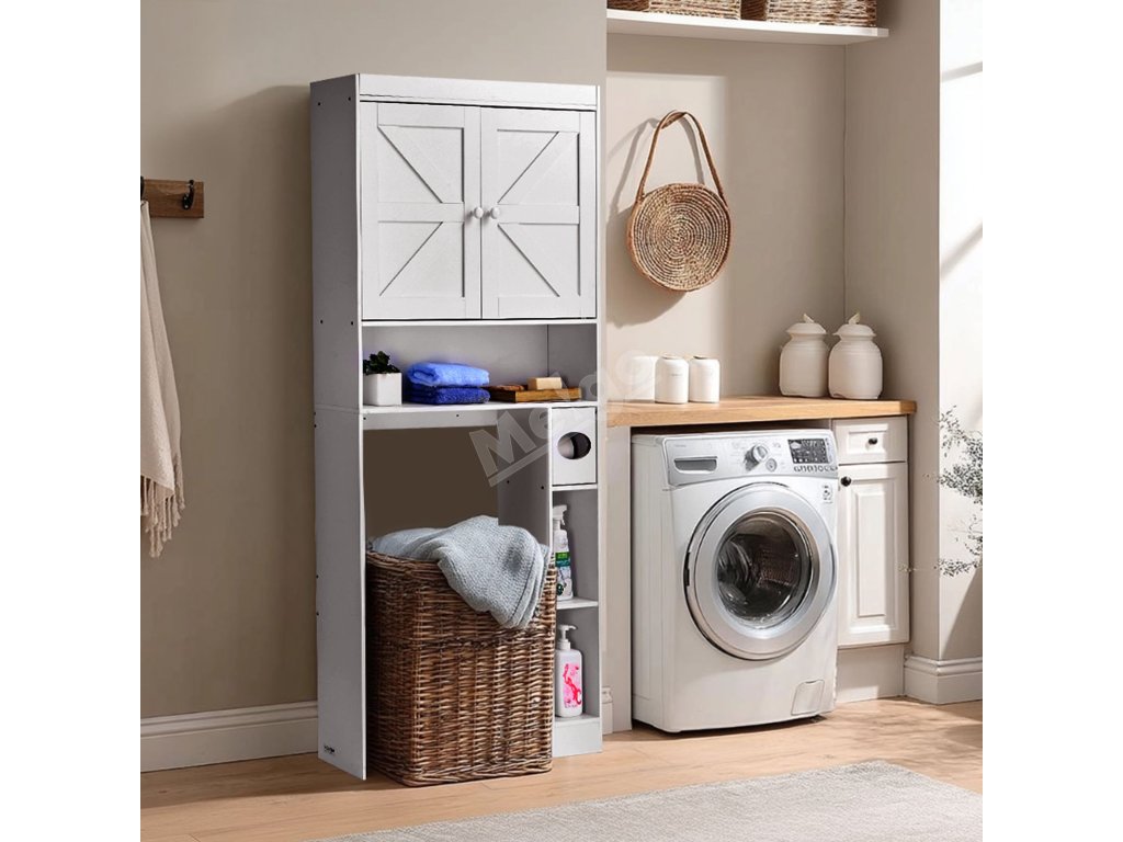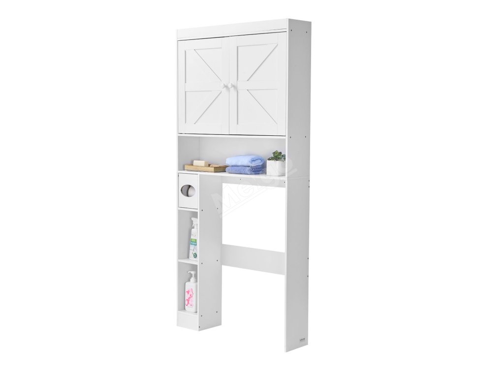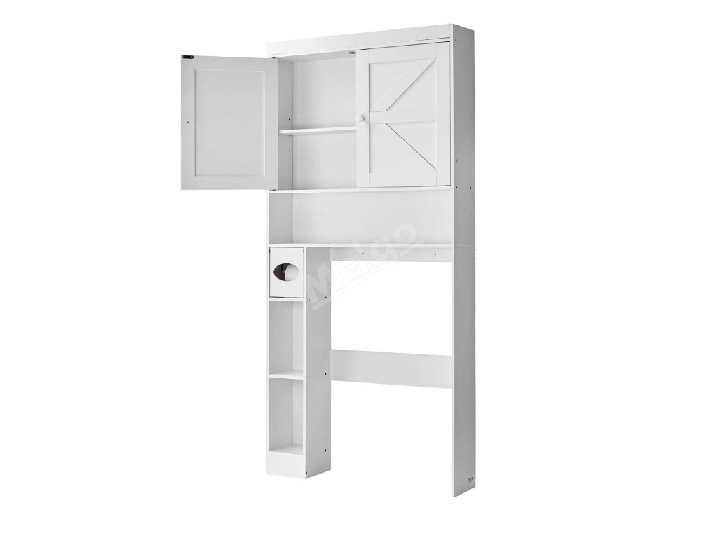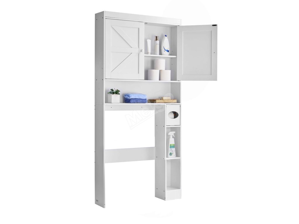 Tato skříňka se hodí nad standardní toalety, aby se ušetřilo místo. Je vyrobena z dřevotřísky a MDF a unese až 66 kg. Je vybavena sadou proti převrácení, víceúrovňovým úložným prostorem a nastavitelnými policemi. Čistý design se hodí do každého interiéru.