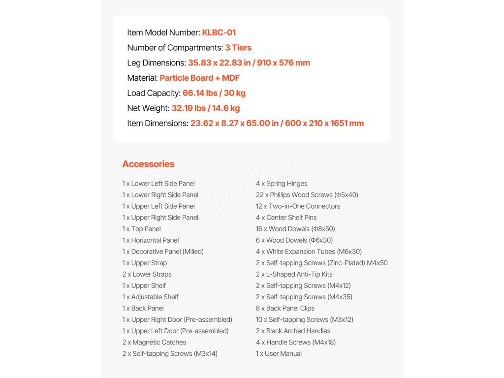 | Rozměry položky | 23.62 x 8,27 x 65,00 in / 600 x 210 x 1651 mm |