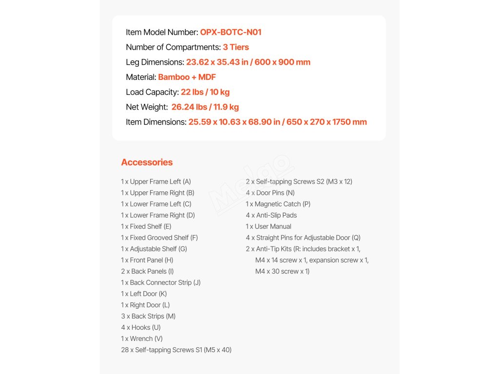 | Rozměry položky | 25.59 x 10,63 x 68,90 in / 650 x 270 x 1750 mm |