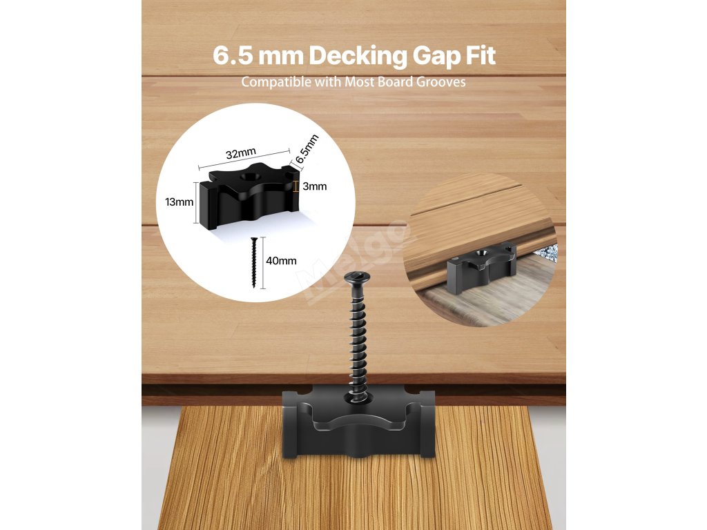 Tyto skryté upevňovací prvky jsou ideální pro terasy, balkony, paluby, bazény a další prostory - pomáhají vytvořit stylový a pohodlný venkovní prostor s minimálním úsilím.