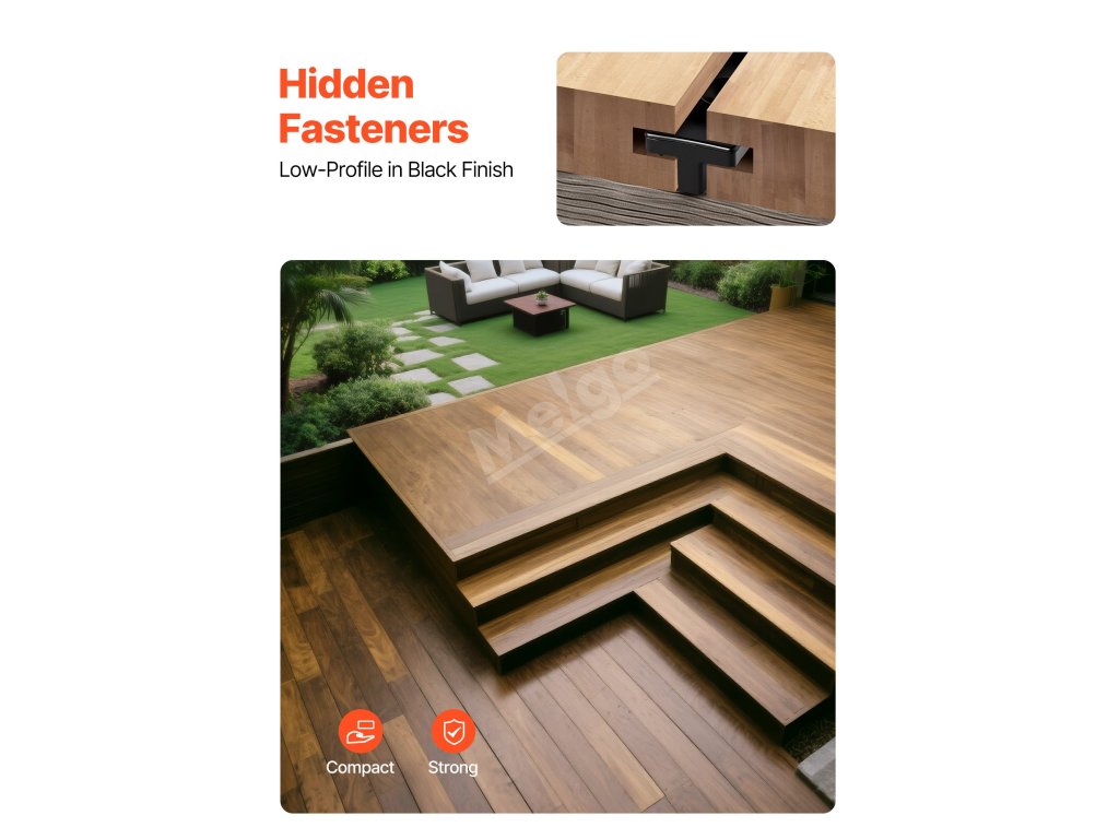 Tyto skryté upevňovací prvky jsou ideální pro terasy, balkony, paluby, bazény a další prostory - pomáhají vytvořit stylový a pohodlný venkovní prostor s minimálním úsilím.