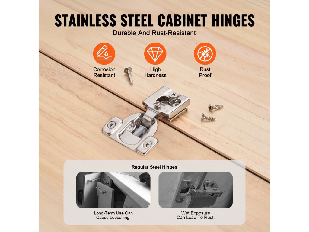 Naše skrinkové pánty sú široko prispôsobené pre všetky druhy dvierok skriniek. Zabudovaný tichý tlmič účinne znižuje hluk pri zatváraní dvierok a chráni skrinku pred nárazmi. Vysokokvalitná nehrdzavejúca oceľ, ktorá zaručuje, že pánty sú odolné a majú dlhú životnosť vo vlhkom prostredí.