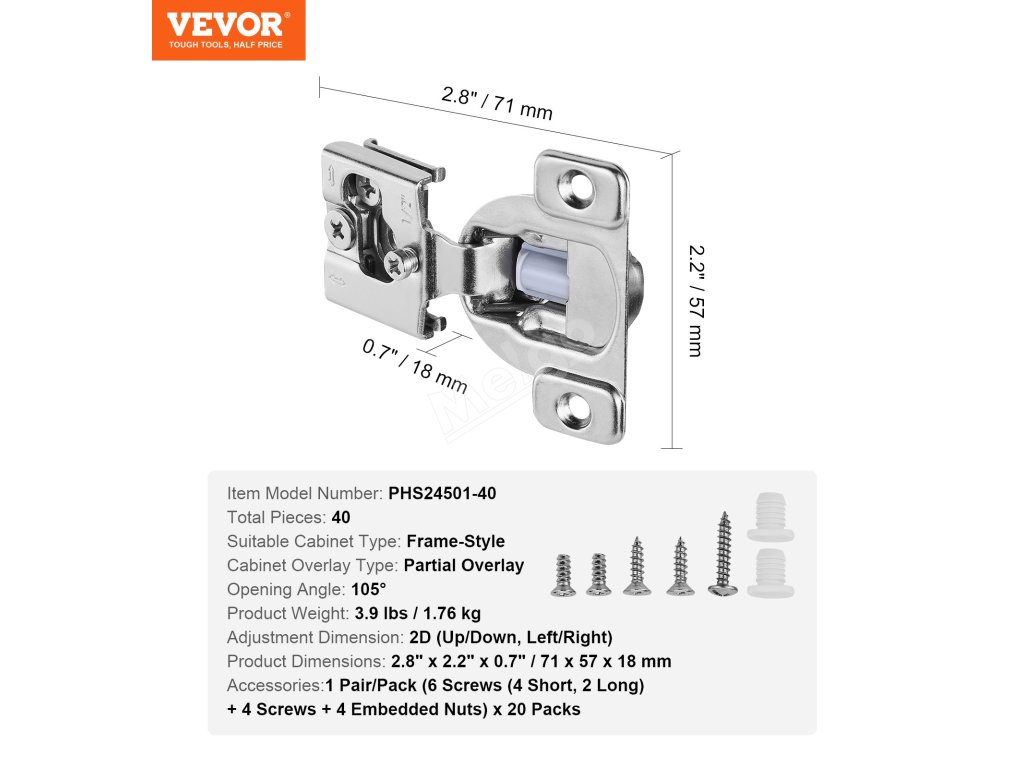 Skryté závěsy 40 ks, částečné překrytí, 105°, tlumené dovírání