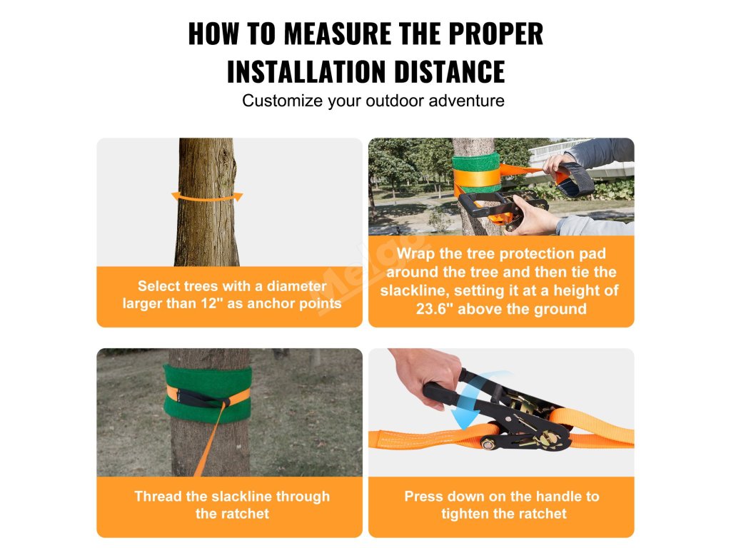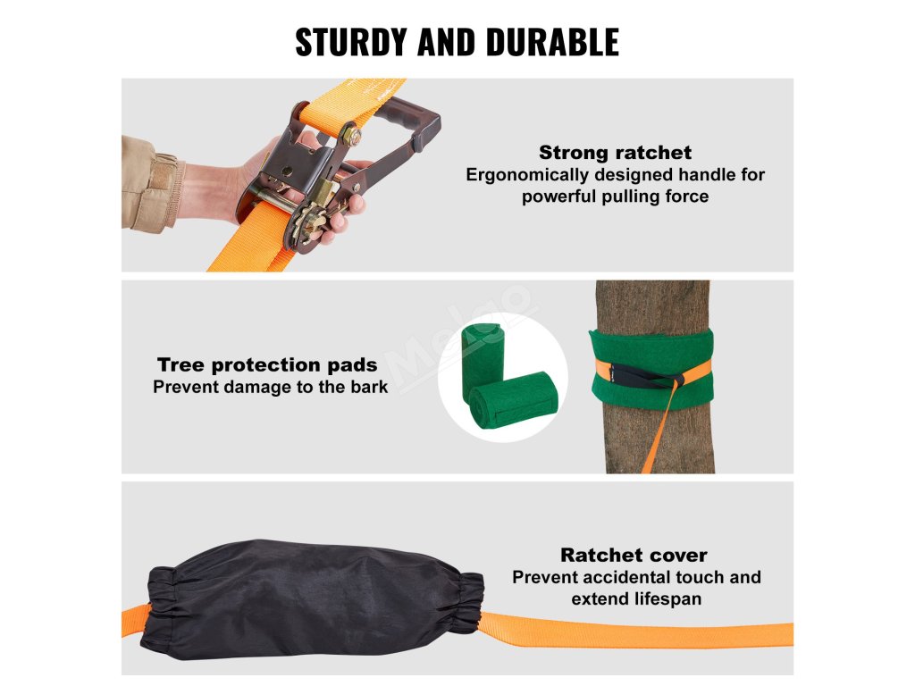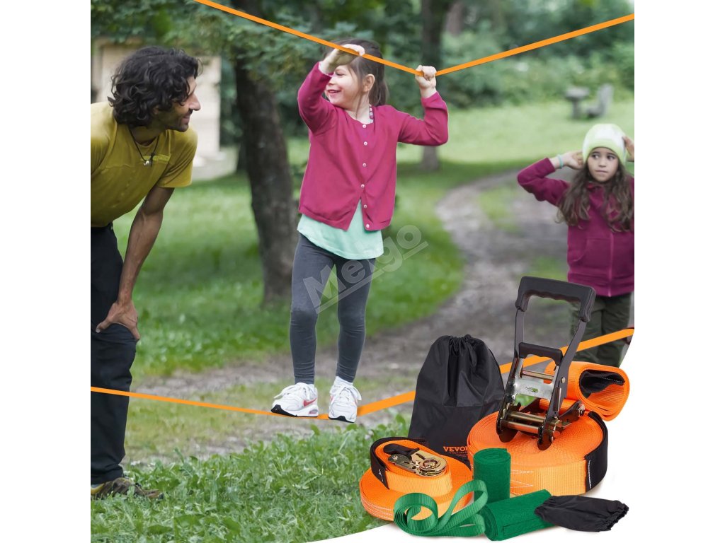 Vysoce kvalitní ráčny zajišťují, že popruh zůstane napnutý a bezpečný. Ať už jste začátečník nebo expert, na našem balančním laně můžete s jistotou zdolávat výzvy, protože víte, že je bezpečné a zajištěné.