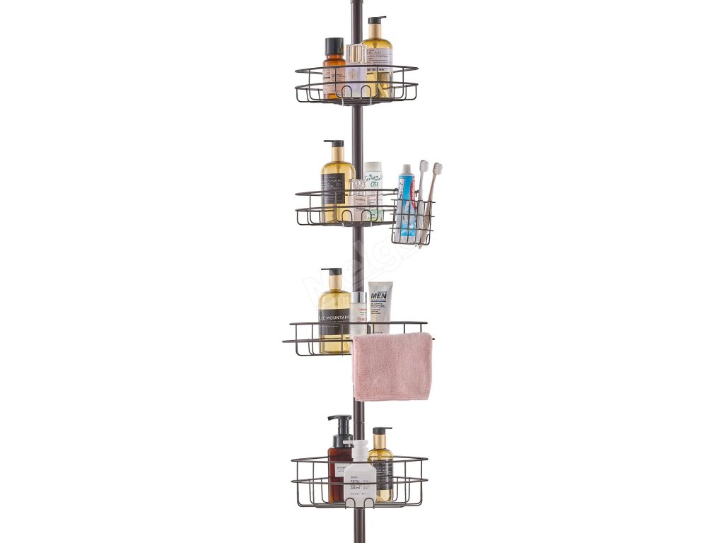 Sloupek do kouta sprchy s policemi, nastavitelný 56"–114" vysoký, nerez