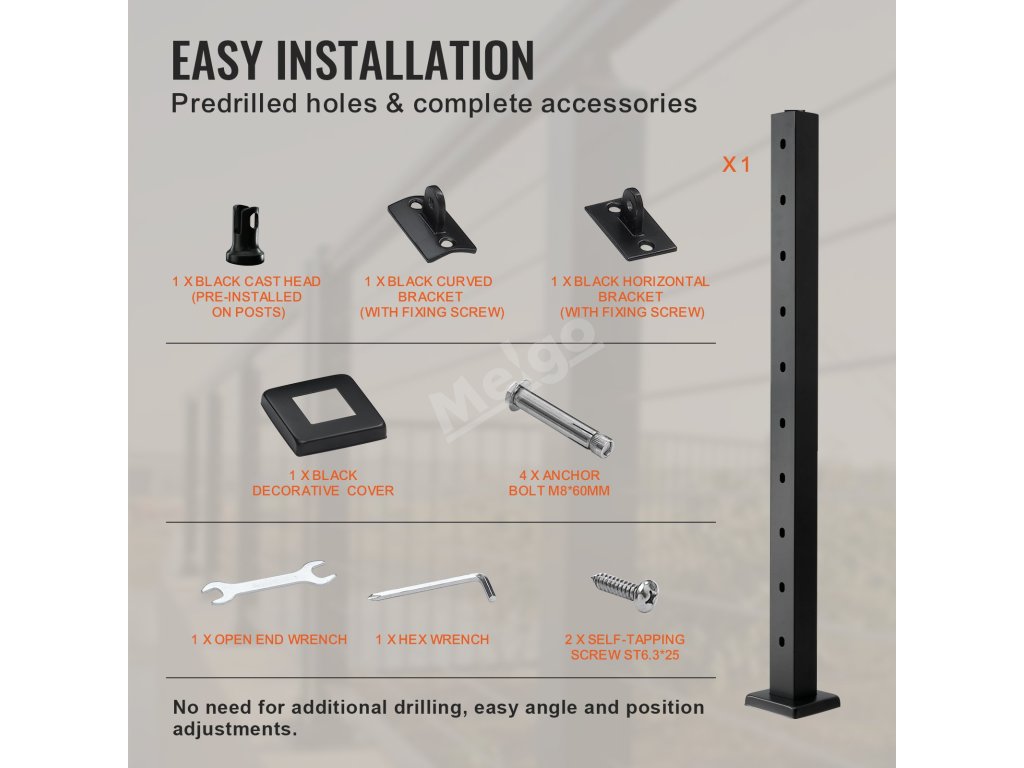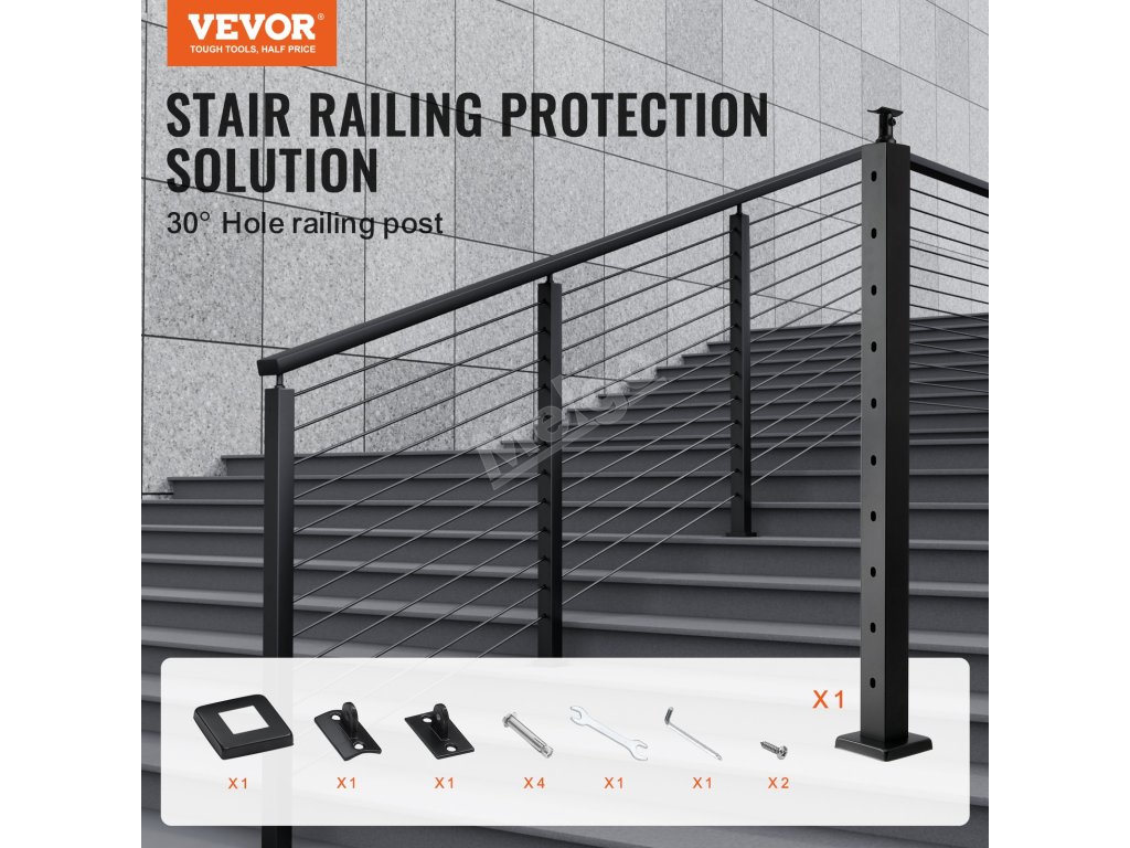 Náš sloupek schodišťového zábradlí se dodává s předvrtanými otvory, takže při instalaci není nutné další vrtání. Úhel a polohu můžete během instalace snadno upravit pomocí přiloženého příslušenství, což vám ušetří práci.