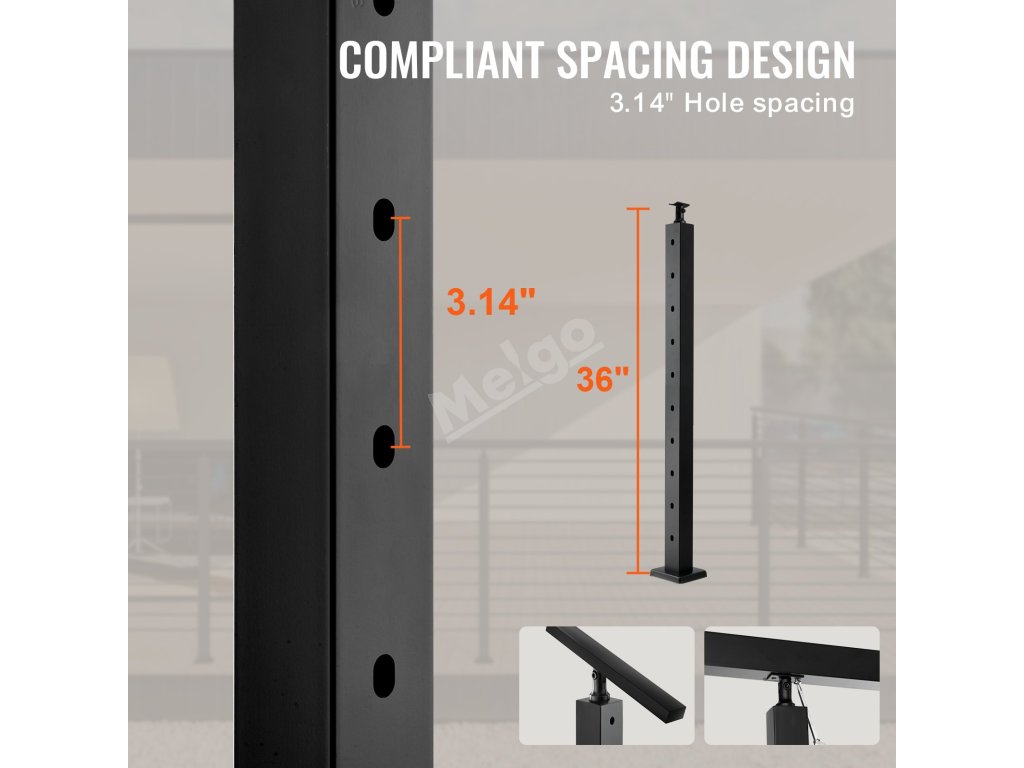 Náš 36" sloupek zábradlí s úhlovým otvorem 30° má oválné otvory 0,41"-0,59" s roztečí 3,14" mezi jednotlivými otvory, které prošly 4" kuličkovým testem. Ideální pro ochranu vaší rodiny na schodech s úhlem 25° až 35°, čímž je zajištěna jejich bezpečnost.