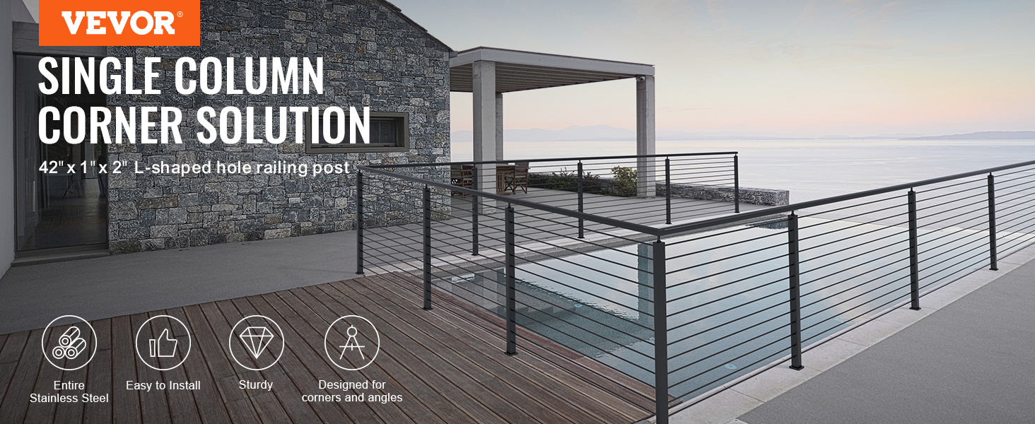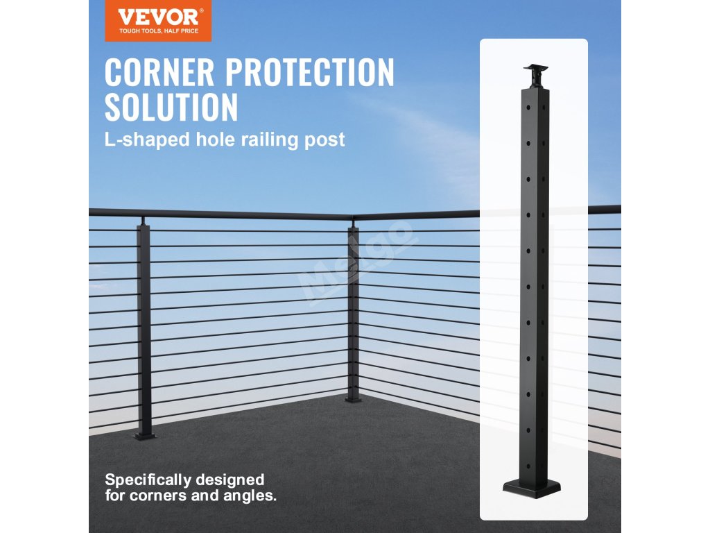 Tento 36palcový sloupek zábradlí s otvorem ve tvaru písmene L je speciálně navržen pro rohy. Dodává se s předvrtanými 10 páry otvorů ve tvaru L, které lze použít pro vodorovné členění i jako konstrukční koncové sloupky pro vodorovné rohové části.