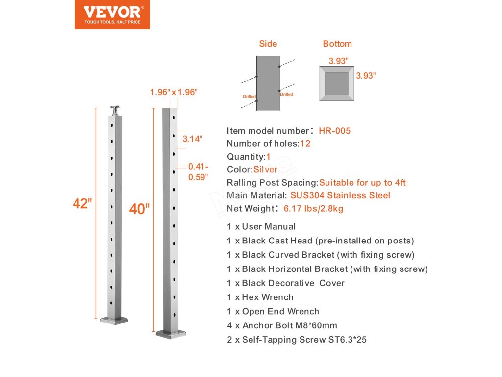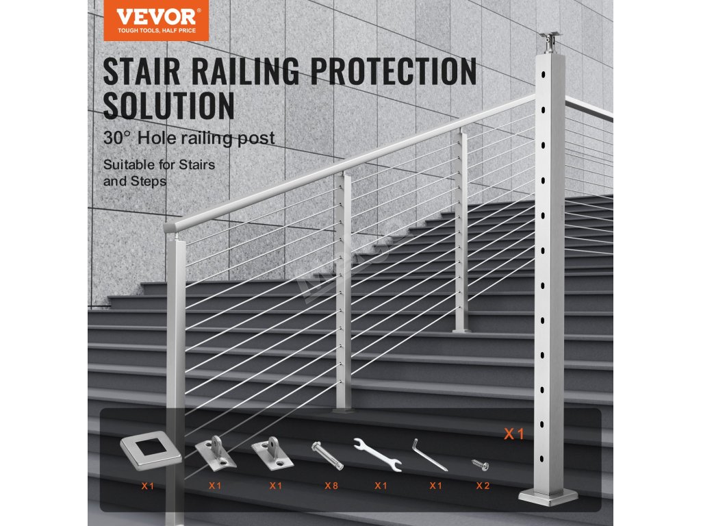 Náš sloupek schodišťového zábradlí se dodává s předvrtanými otvory, takže při instalaci není nutné další vrtání. Úhel a polohu můžete během instalace snadno upravit pomocí přiloženého příslušenství, což vám ušetří práci.