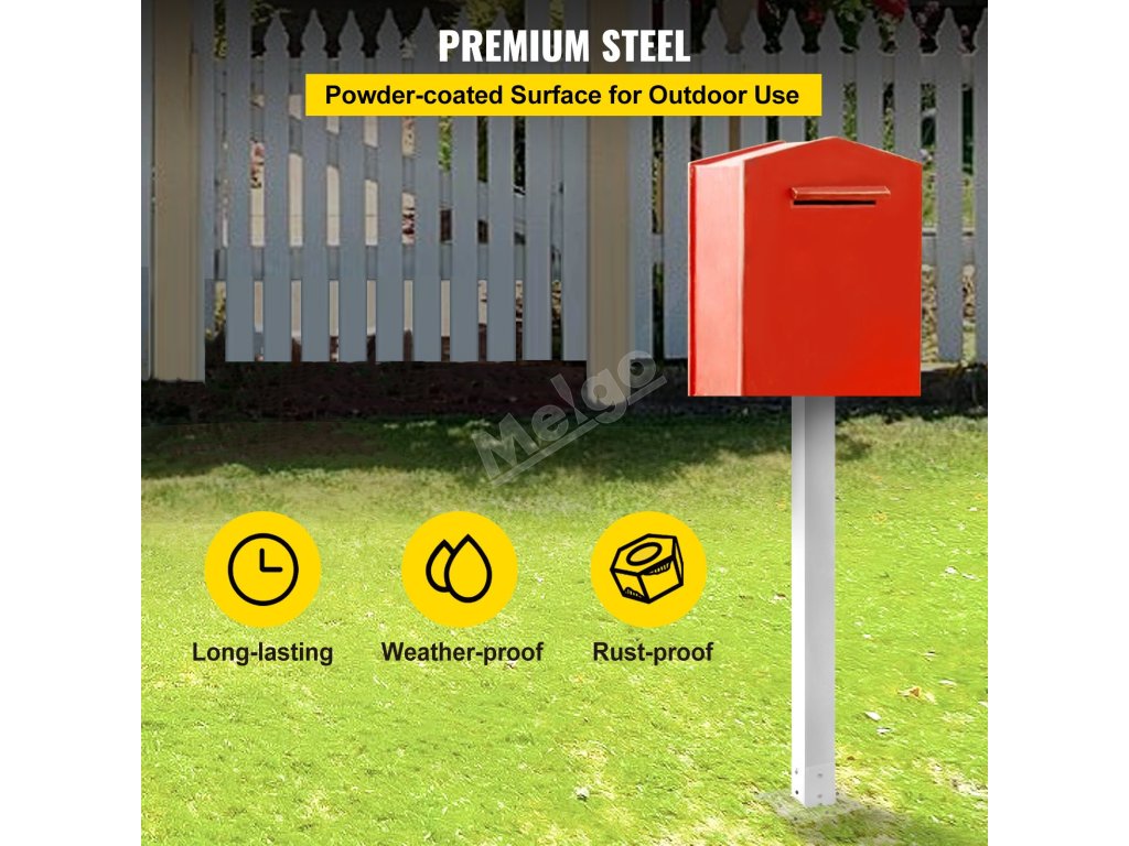 Náš sloupek poštovní schránky je vyroben z prvotřídního ocelového materiálu a je odolný proti korozi, což zaručuje dlouhou životnost. Práškově lakovaná povrchová úprava je navíc odolná vůči povětrnostním vlivům a je vhodná pro venkovní použití.
