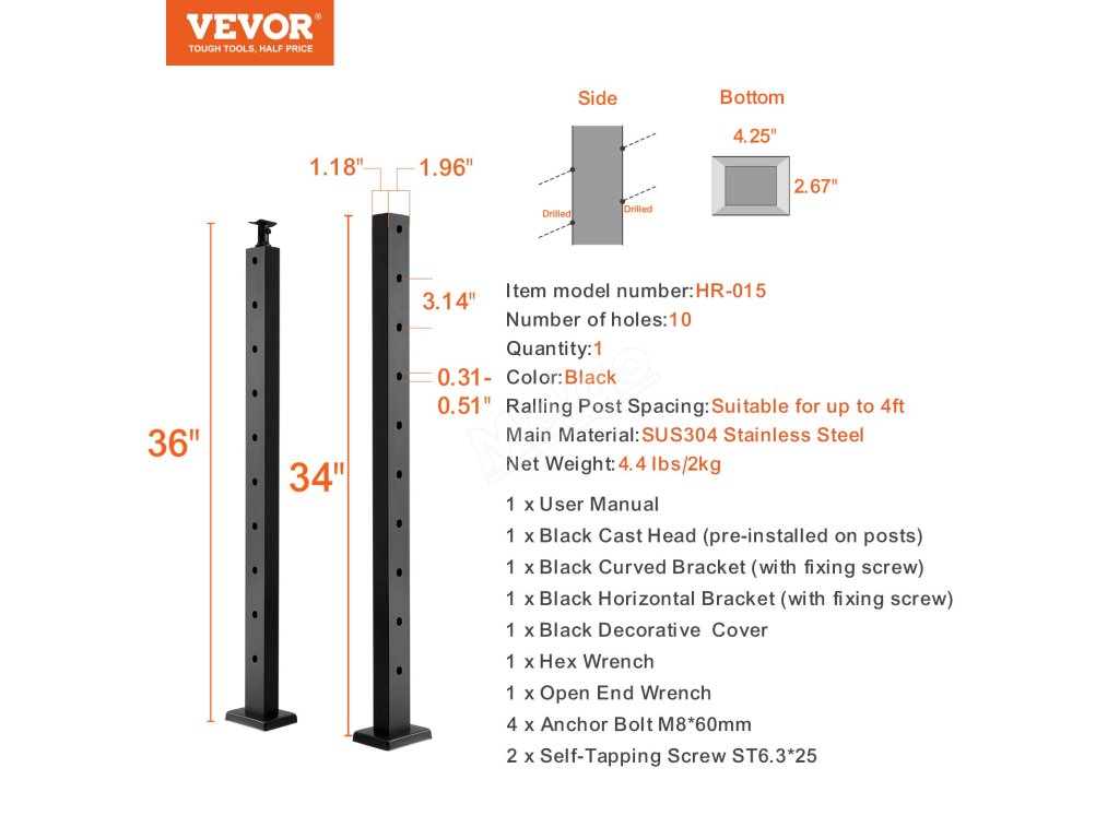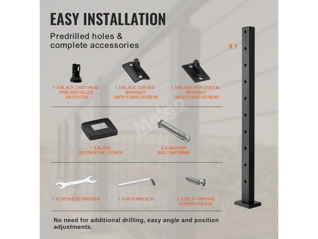 Náš sloupek schodišťového zábradlí se dodává s předvrtanými otvory, takže při instalaci není nutné další vrtání. Úhel a polohu můžete během instalace snadno upravit pomocí přiloženého příslušenství, což vám ušetří práci.