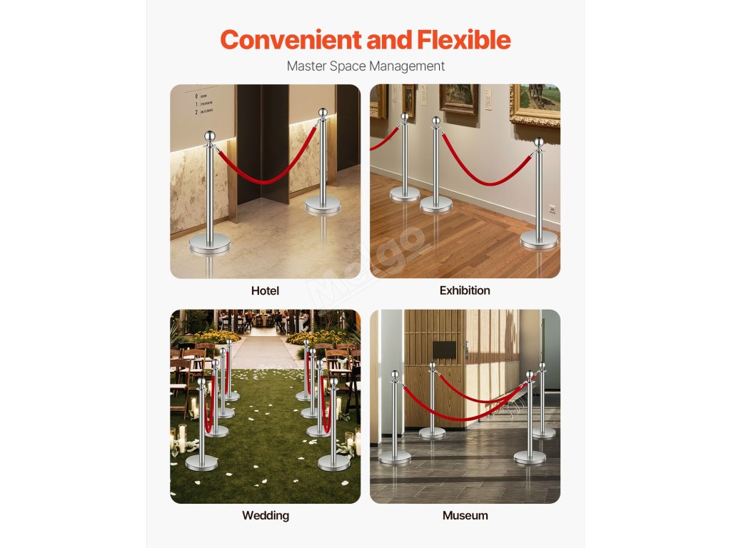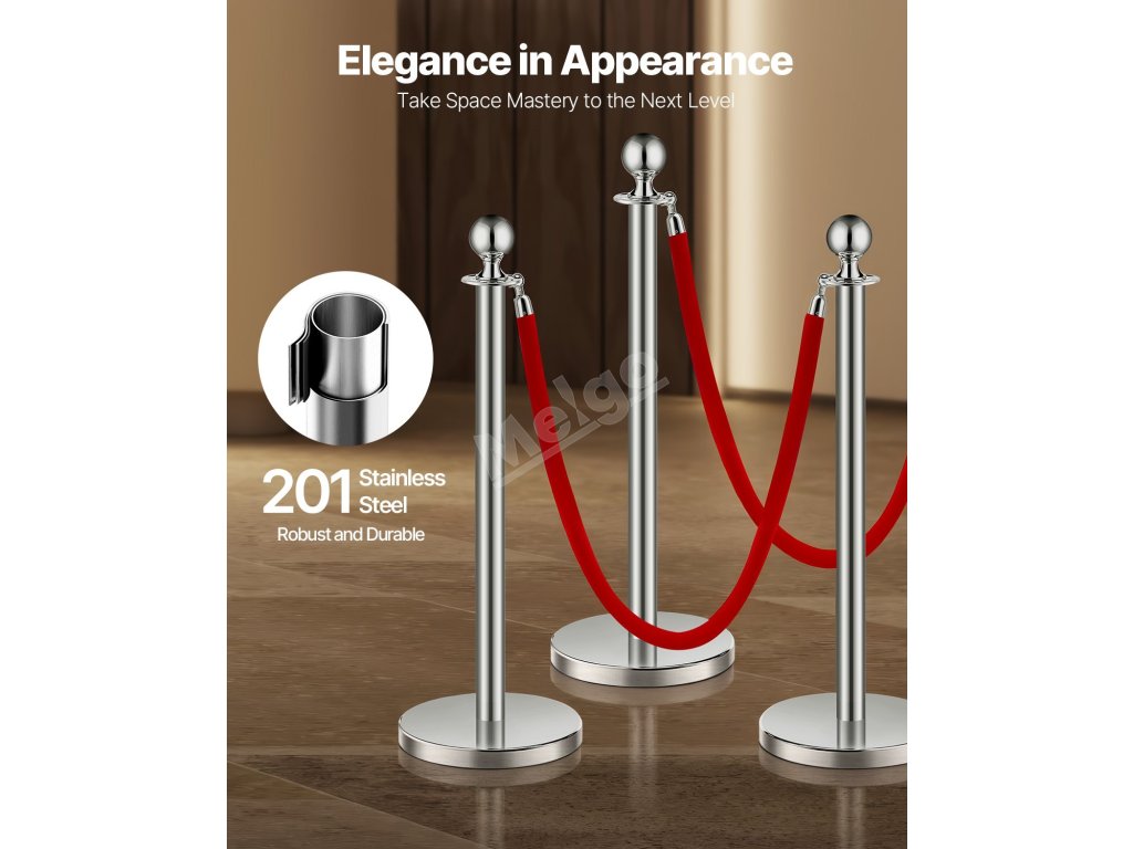 Naše sloupky jsou vyrobeny z pevné nerezové oceli 201 a nabízejí spolehlivost a dlouhou životnost. Díky elegantnímu, minimalistickému designu dodá nádech sofistikovanosti každé události, od červeného koberce po maturitní plesy.