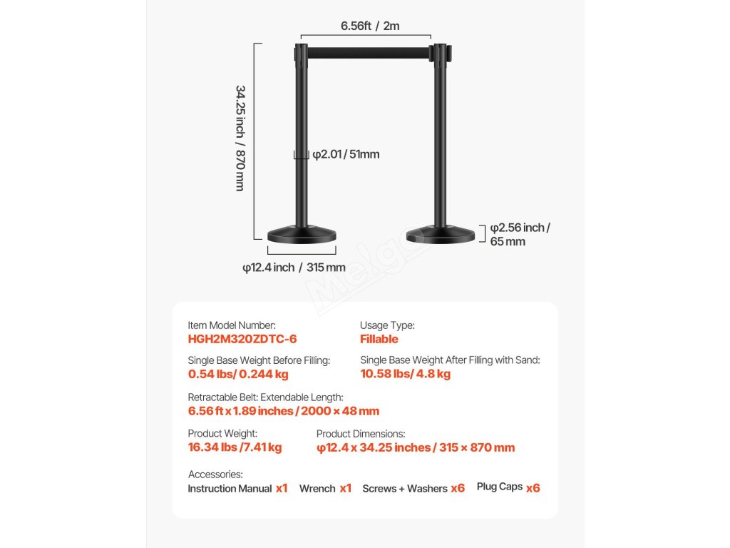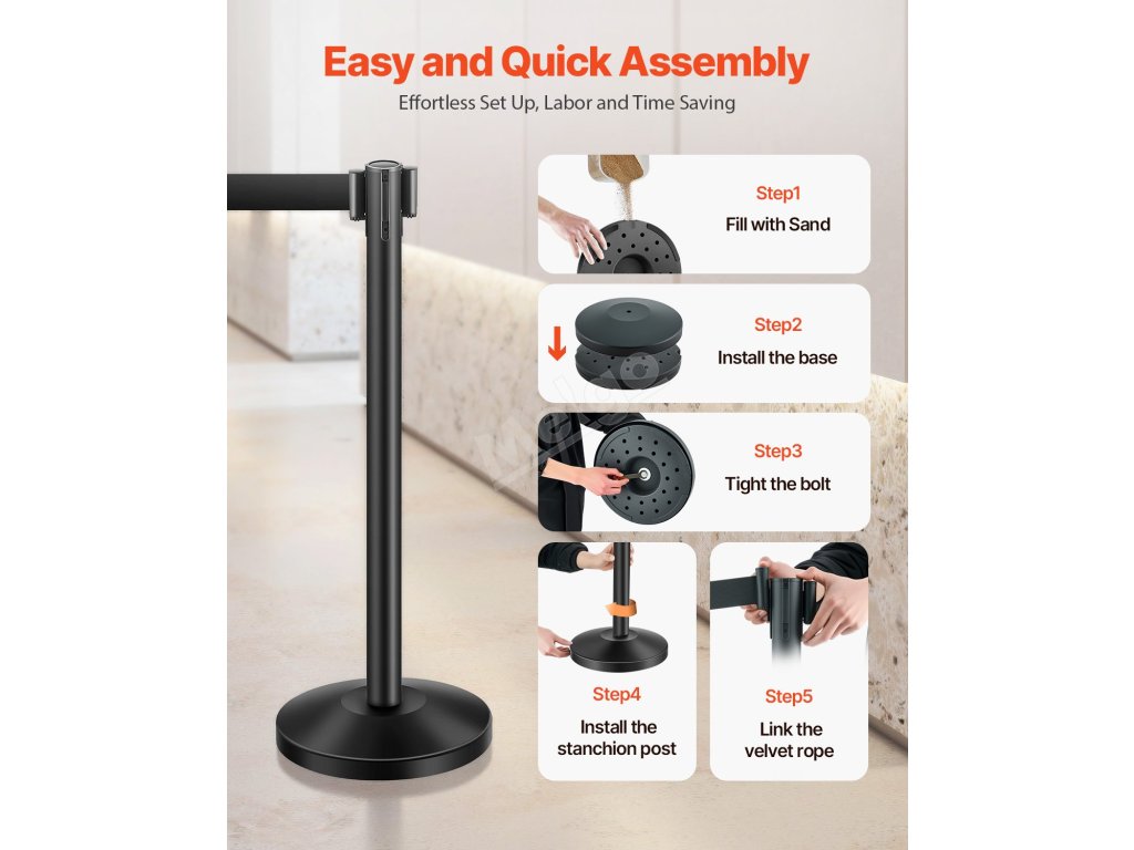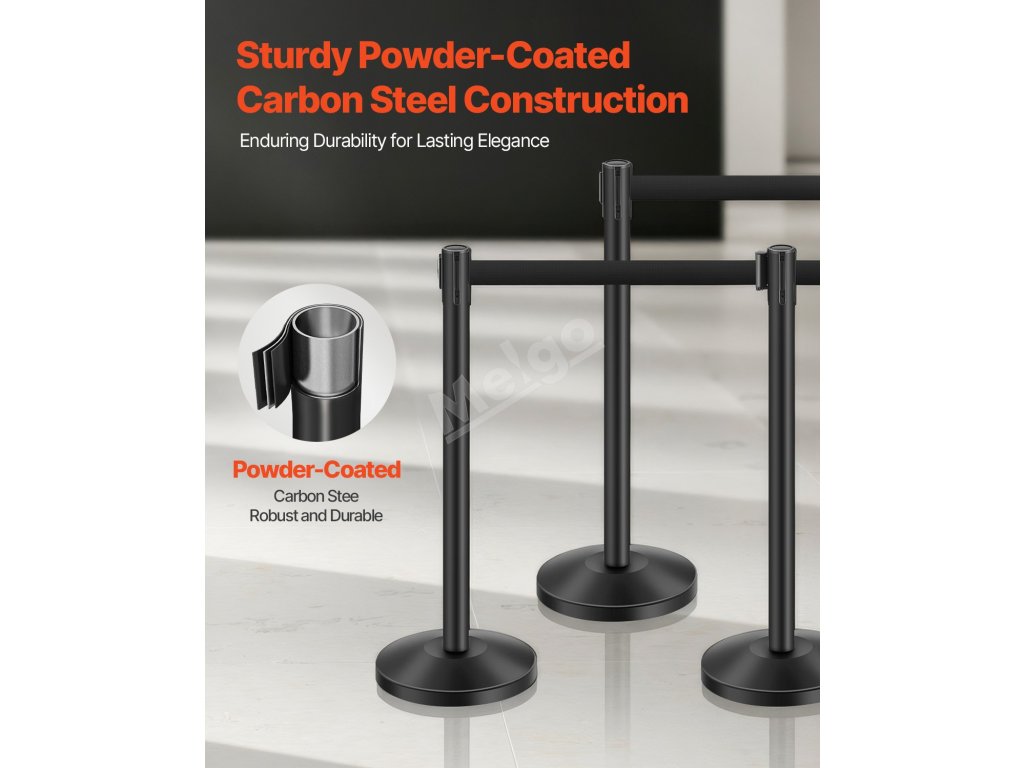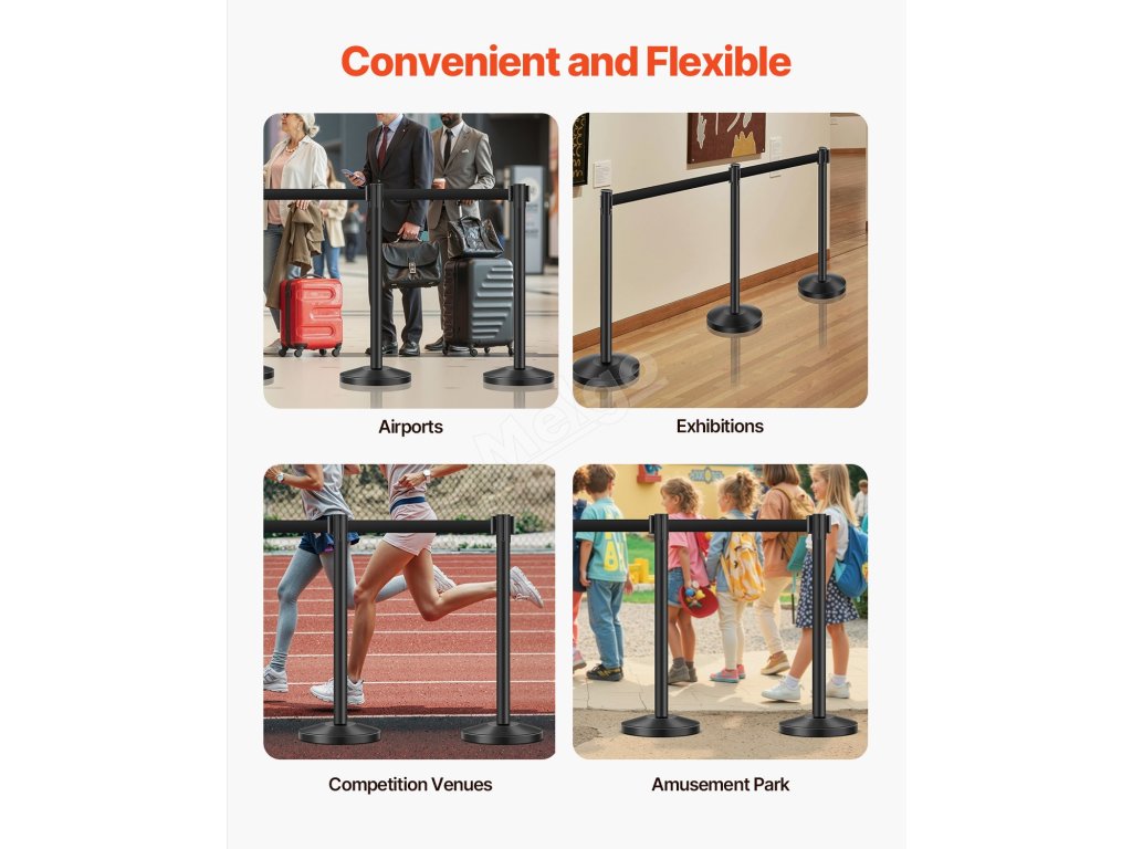 Každá bariéra pro kontrolu davu se dodává se zatahovacím pásem, takže je velmi univerzální a snadno se nastavuje. Pás lze snadno prodloužit nebo zkrátit, aby se přizpůsobil různým prostorům a příležitostem, a nabízí tak flexibilní řešení kontroly davu.