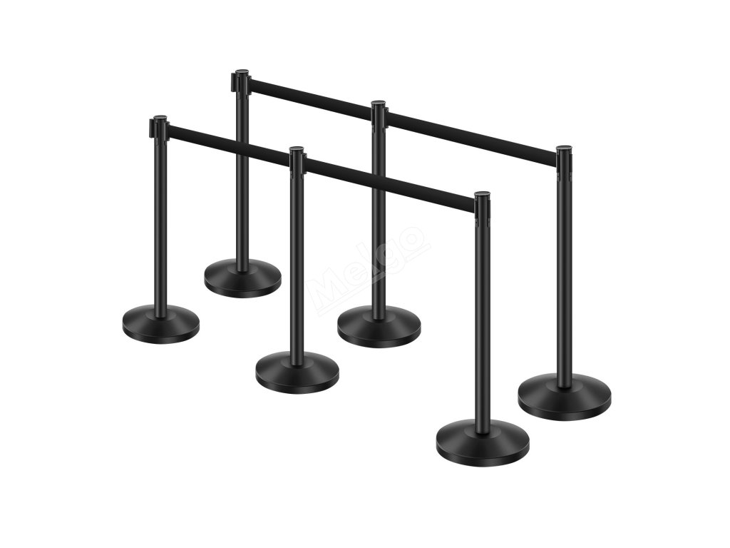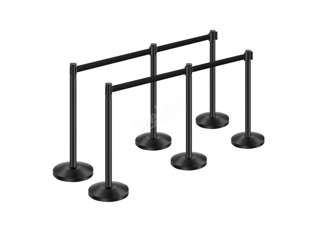 Sloupky s odtahovacími pásy 6 ks, ocel, černé, dutá základna