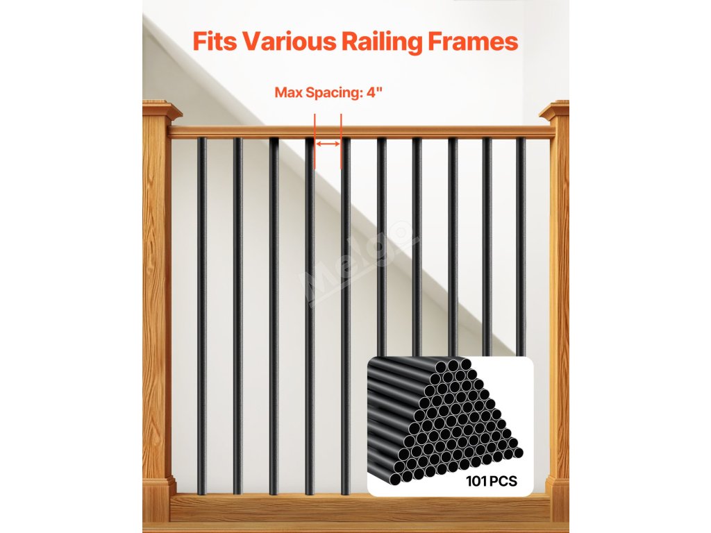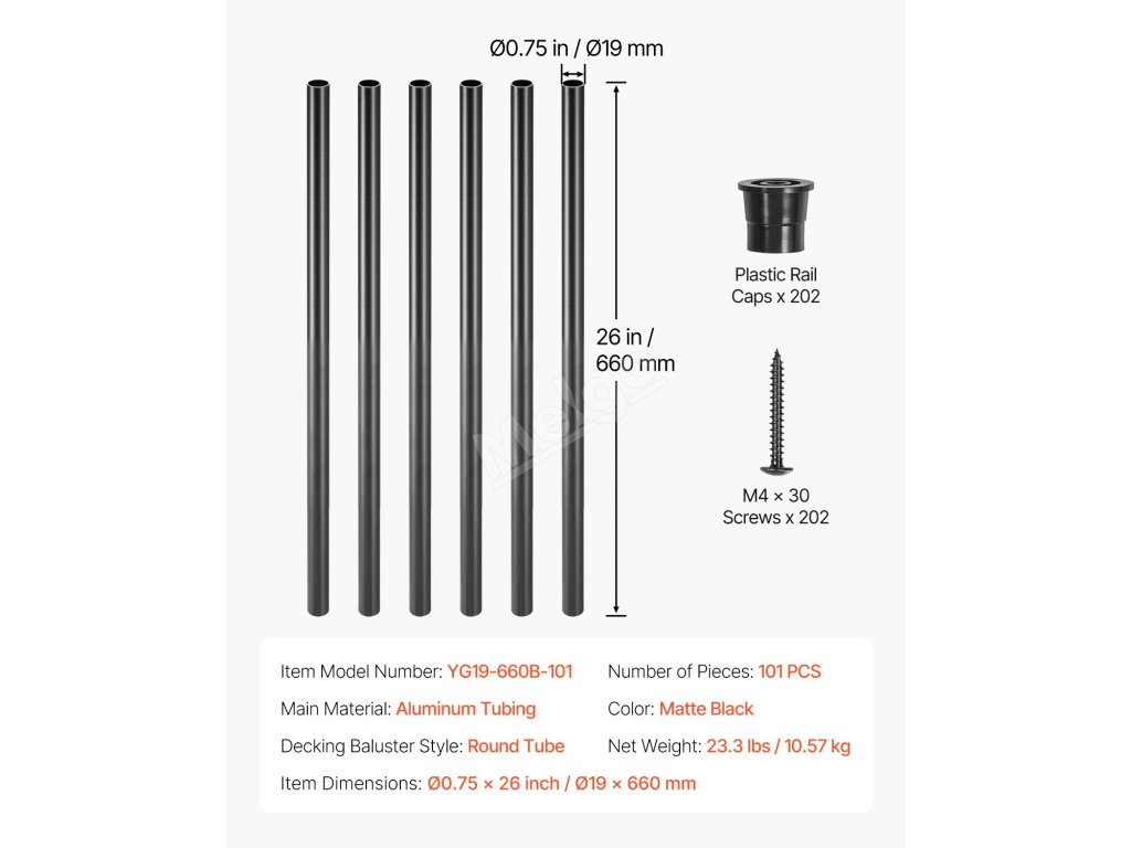 Sloupky zábradlí 101 ks hliníkové 26 in 3/4 inch duté matná černá