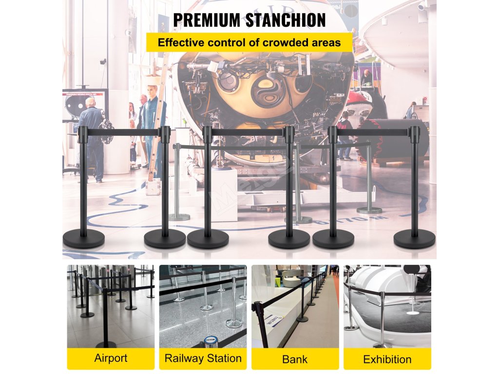 Stojan na kontrolu davu VEVOR je ideálny na profesionálne podujatia. Jeho elegantný, celočierny dizajn dodáva nádych elegancie. Dokonale sa hodí, či už organizujete obchodnú výstavu alebo umeleckú galériu. Stojany sa jednoducho nastavujú a používajú. Poskytujú elegantný a organizovaný vzhľad každému priestoru podujatia. Ich pevná konštrukcia zaručuje, že zostanú na svojom mieste. Sú spoľahlivou voľbou na riadenie davu. Sťahovacie pásy umožňujú jednoduché nastavenie zábran podľa potreby. Táto flexibilita je ideálna pre rôzne usporiadania podujatí. Tieto zábrany pomáhajú udržiavať poriadok a zlepšujú celkový zážitok z podujatia.